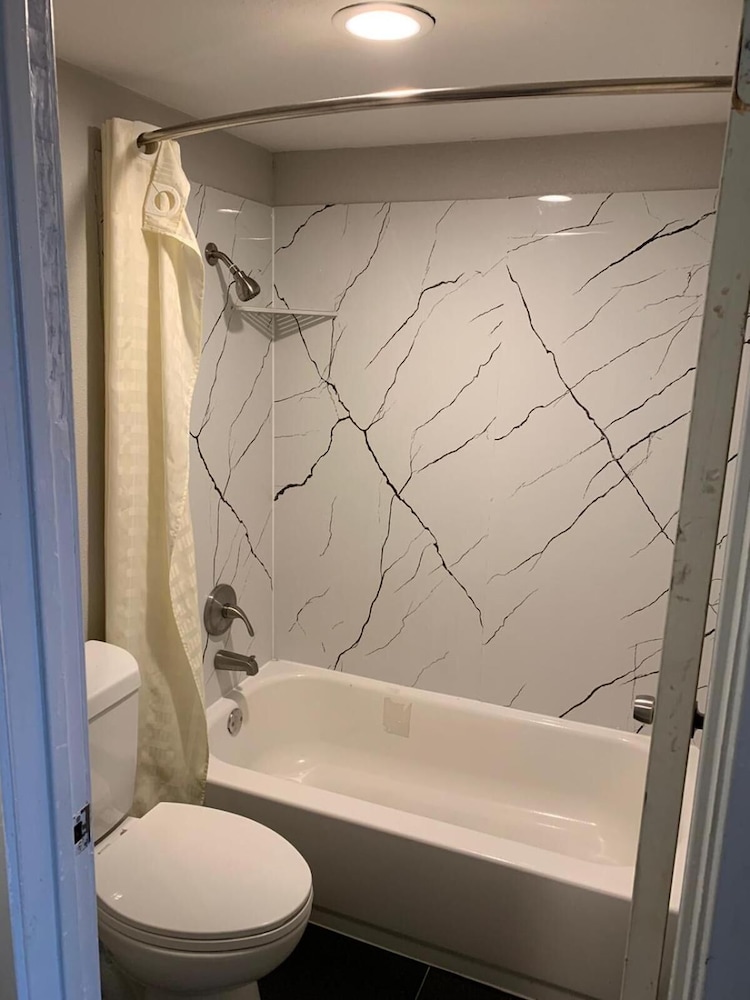 After a long argument with the man at the office about giving us our room (we prepaid) he kept claiming it was not paid, even after I showed him the confirmation number, come to find out he had written it down wrong. Anyways after we finally got our room there was no tv no pillows stains all over the carpet. No hot water. Just horrible