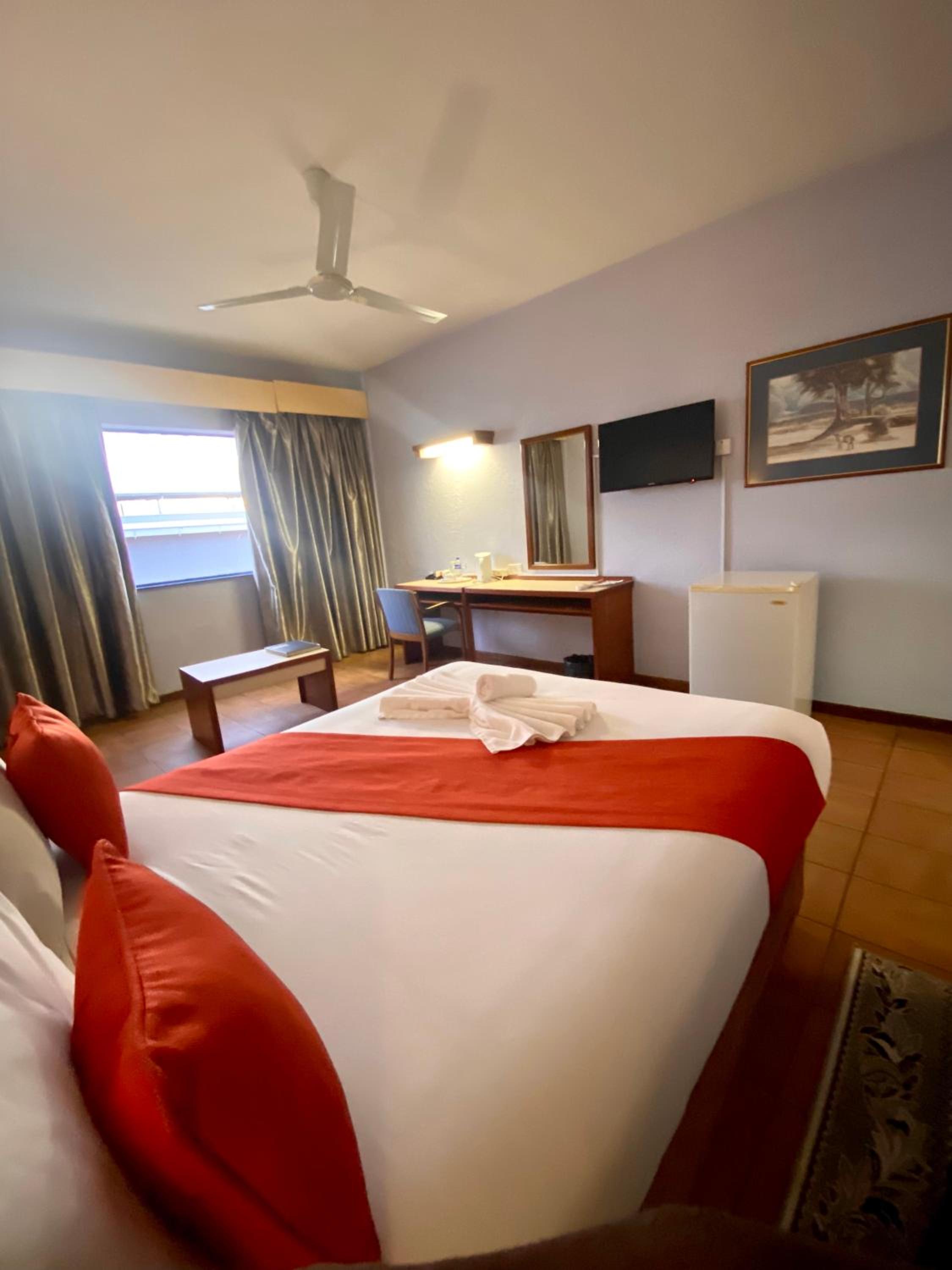 Indulge in comfort at Gaborone Hotel with rooms equipped with TV, satellite channels, and air conditioning. Enjoy the convenience of an electric kettle and unwind in the private bathroom with a bath and shower.