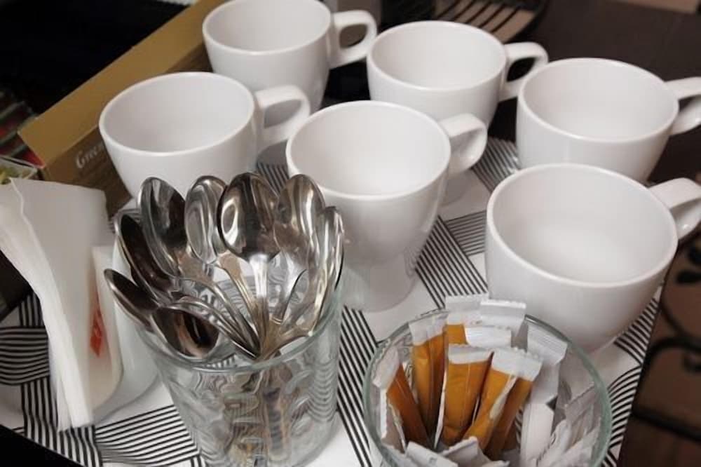 The rooms are fine everything works the shower is good. There is communal tea and coffee in the hallway. I would stay there again.