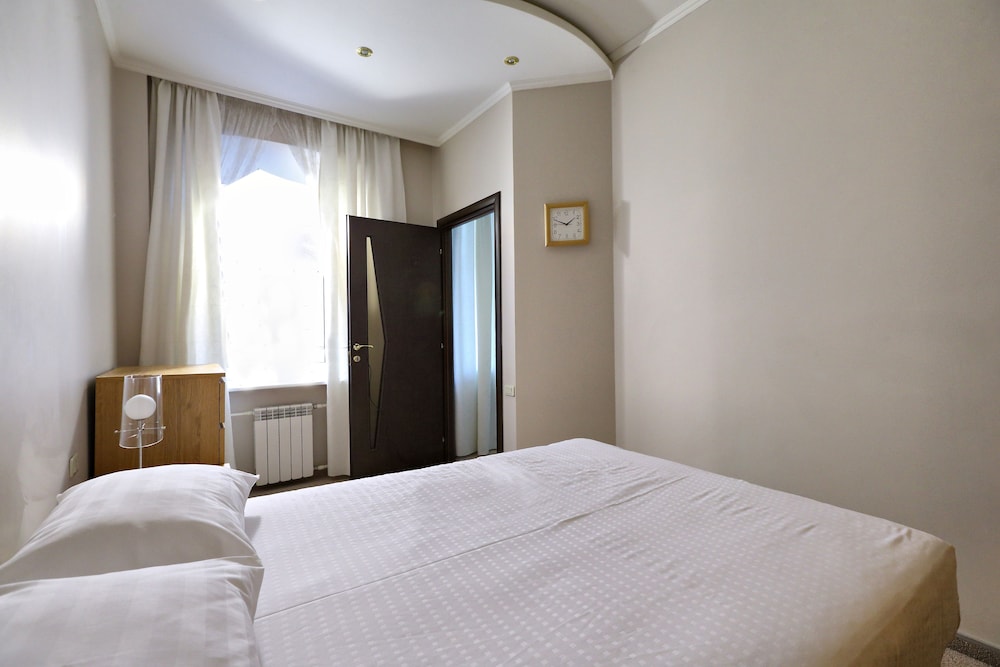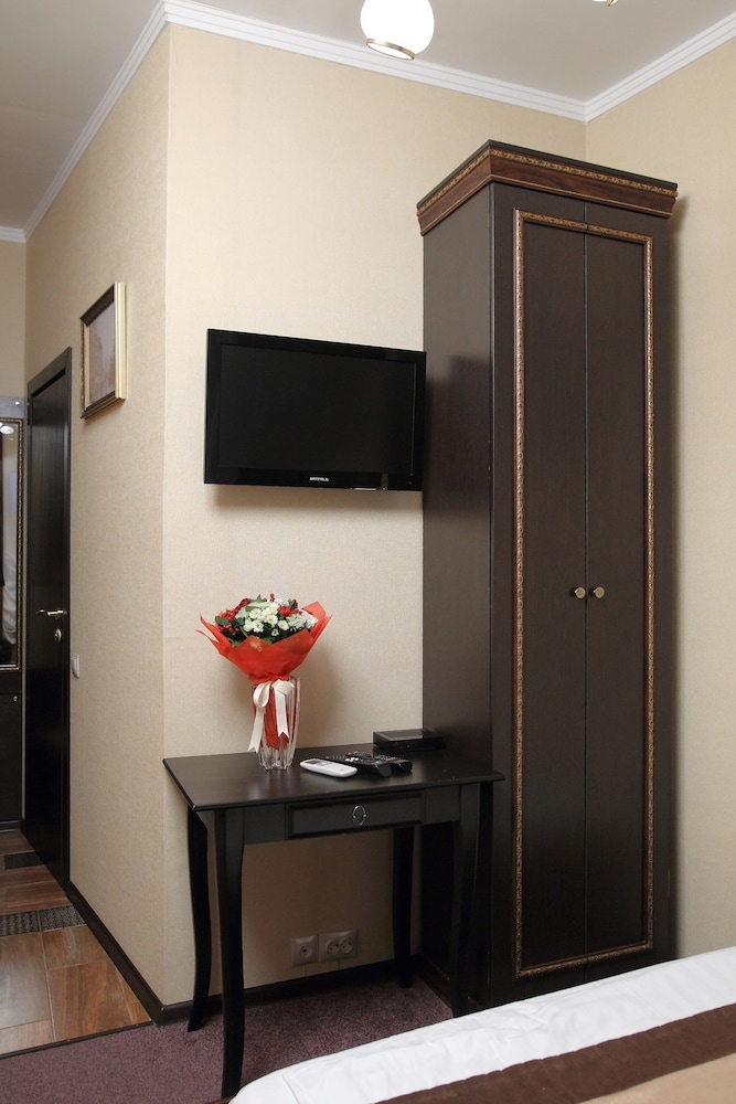 The hotel was small (about 6 rooms total) and not easy to find at first but for the price it was well worth it. The room (junior suite) we stayed in was clean and the staff was nice. I was told that there would be an English speaking staff member available but that was not the case which was OK as my fiancé is fluent in Russian but this should be taken into consideration if you or someone you are with does not speak the language. The room was slightly hot which was easily remedied by cracking a window. There is a TV in the room that gets a few Russian cable channels if you are into that sort of thing while visiting another country. The metro was a 5-10 minute walk from the hotel which connects you to almost every part of Moscow. There were several restaurants, shops, and a grocery store within a short walk from the hotel. We took a taxi from the hotel to the airport (Sheremetyevo) for 850 rubles (about $12) which was super cheap. All in all I'd recommend this place if you are looking for a decent, reasonably priced place to stay while you explore Moscow.