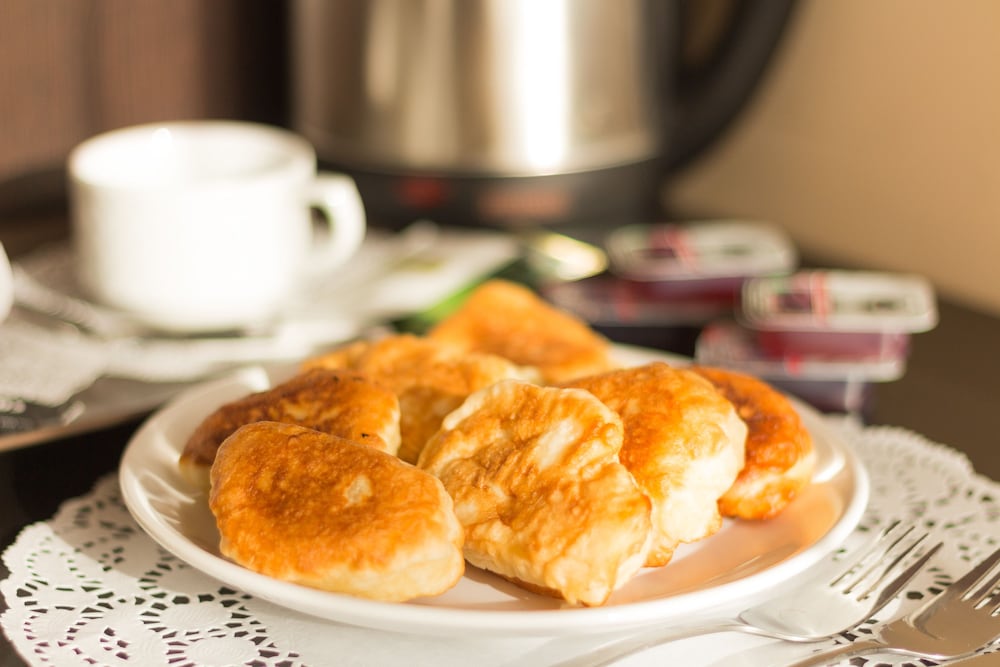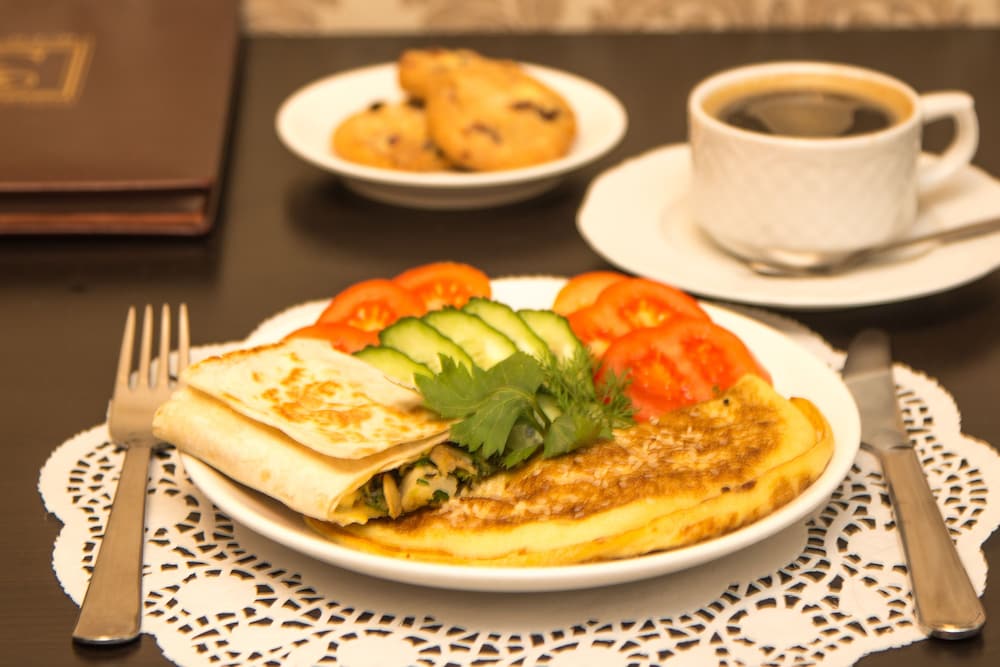 Twice I paid 350 rubles for the breakfast. It was quite a simple meal of a porridge and Russian pancakes or a meat pastry thingy. Both times I enjoyed it. Coffee, tea and so on is free on the first floor landing.