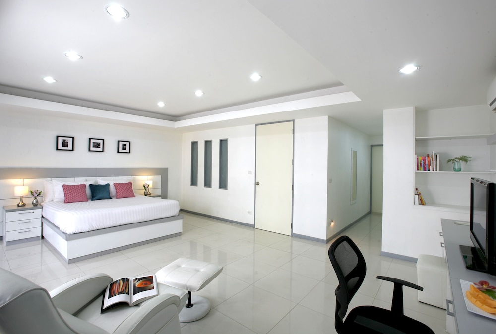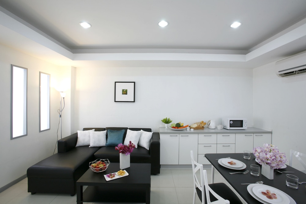 一家三口一起入住這酒店,離曼谷機場約20分鐘車程,地方比軟偏離了市中心,一定要搭乘的士司機才能找到的酒店,酒店房間供應比較小,只有幾層及每層得幾個單位,單位非常大,有大廳一個,房子內有2張相連的3尺牀,一個寛濶的衣帽間,洗手間俱全,酒店設計雖然平淡,但給人舒服的感覺,不是咵張,一家6人都夠住,所以除了位置外,其他的都很滿意因價錢合理