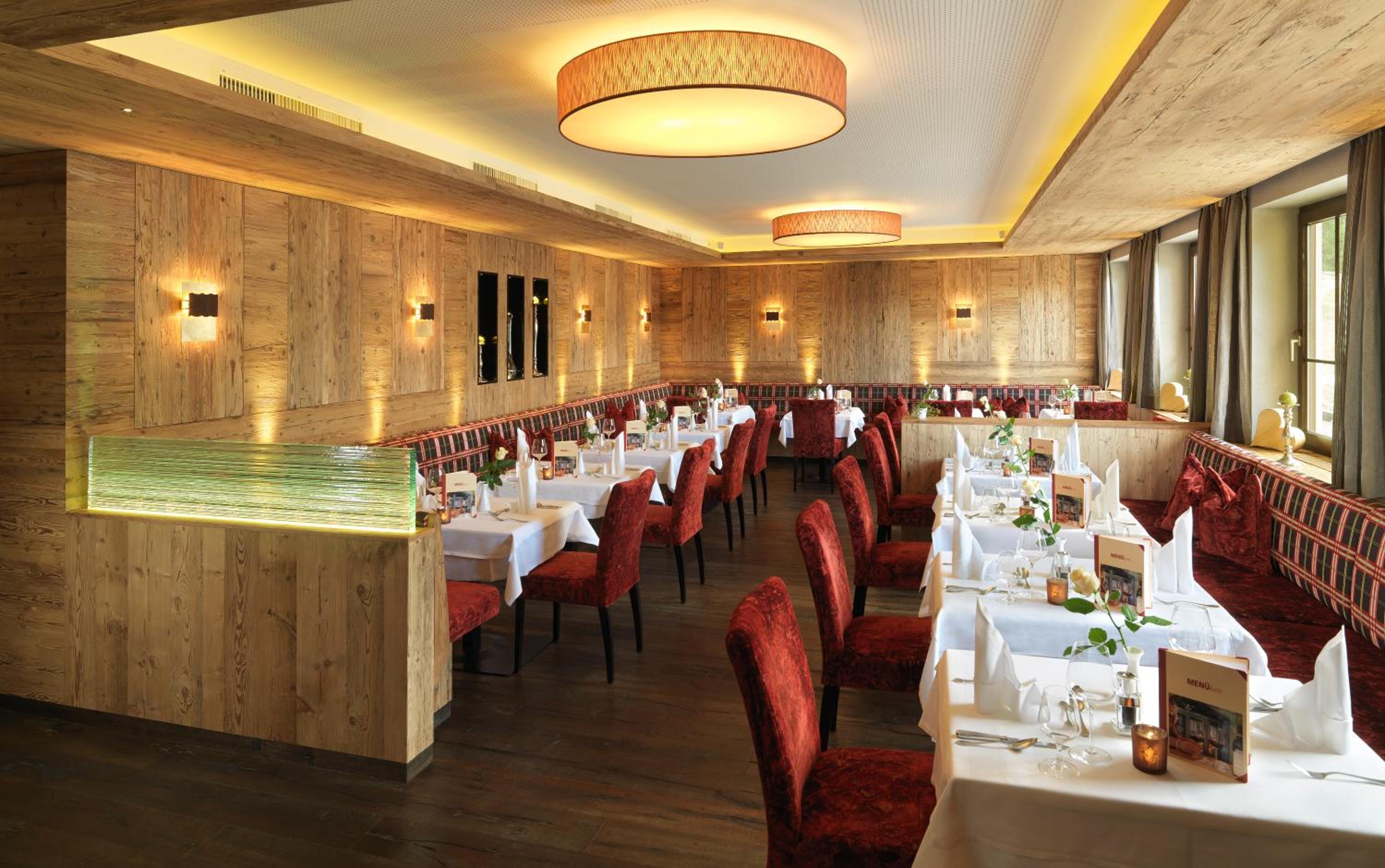 Indulge in Tyrolean specialities and Austrian-Mediterranean dishes at the hotel's restaurant, sourcing ingredients locally and from their own hunting grounds. After a day of activities, unwind in the spa area complete with a sauna, steam bath, and hot tub.