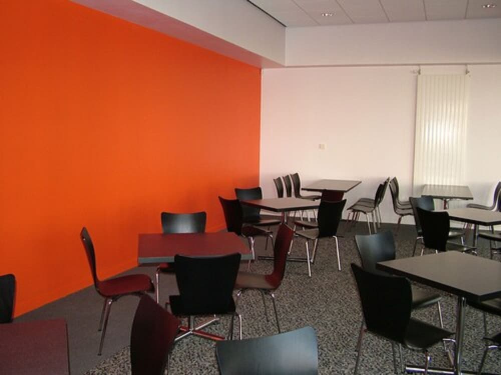 Flat layout with communal lounge and kitchen shared between 5 rooms makes this a great choice for individuals or groups. Bedroom was on a par with Premier Inn. Very clean and warm room with nice linen. Tea and coffee tray. The en suite shower room and particularly the shower is very small but adequate. The grout and silicon around the shower was due a refresh. Great breakfast choice, hot and cold and lots of vegetarian options. On site bar and bistro.