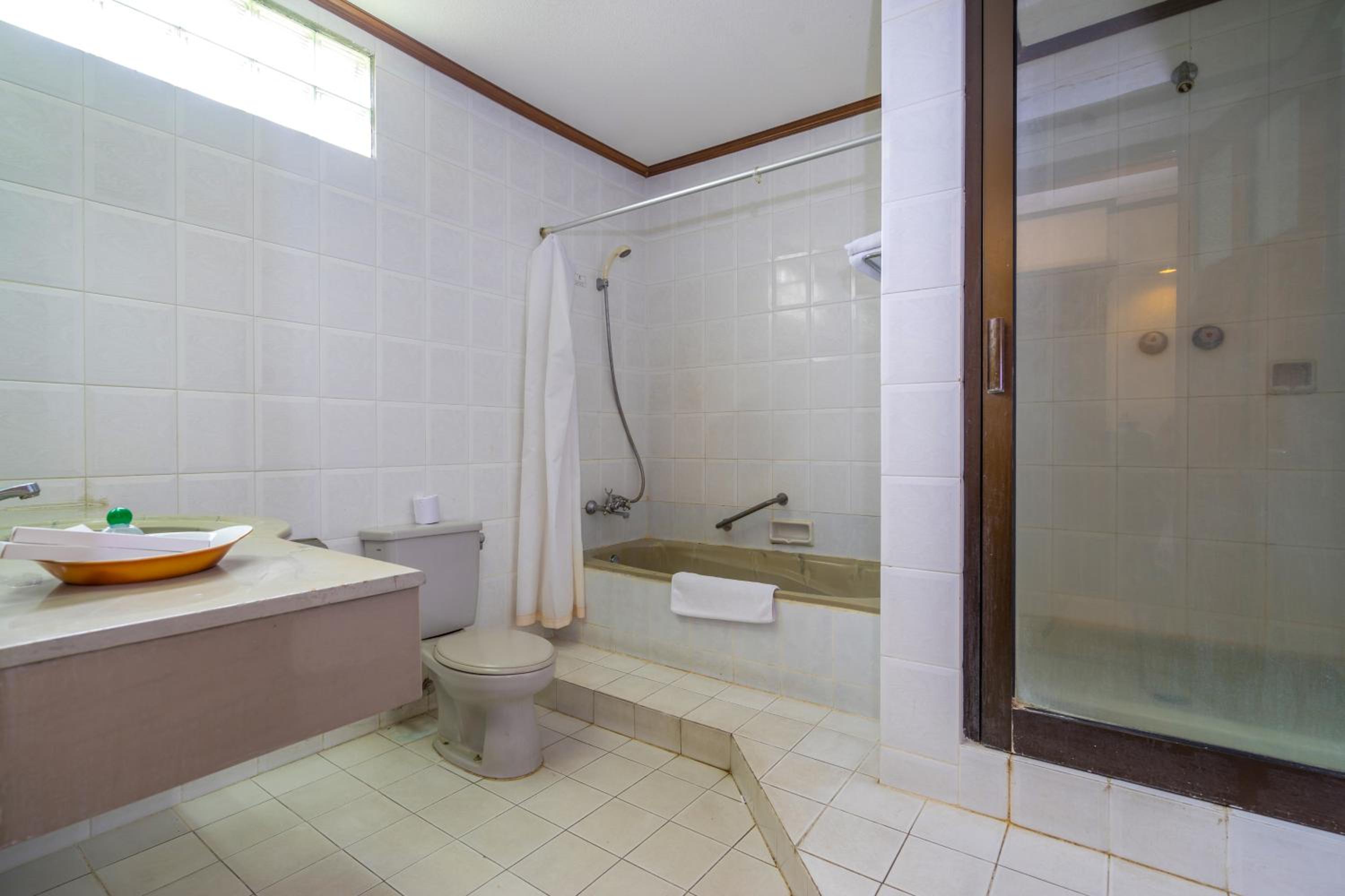 Het is een zwaar gedateerd hotel. Met oude sanitaire voorzieningen