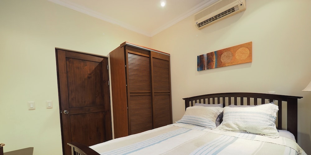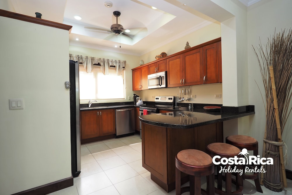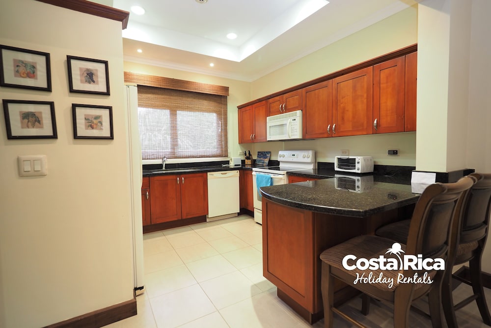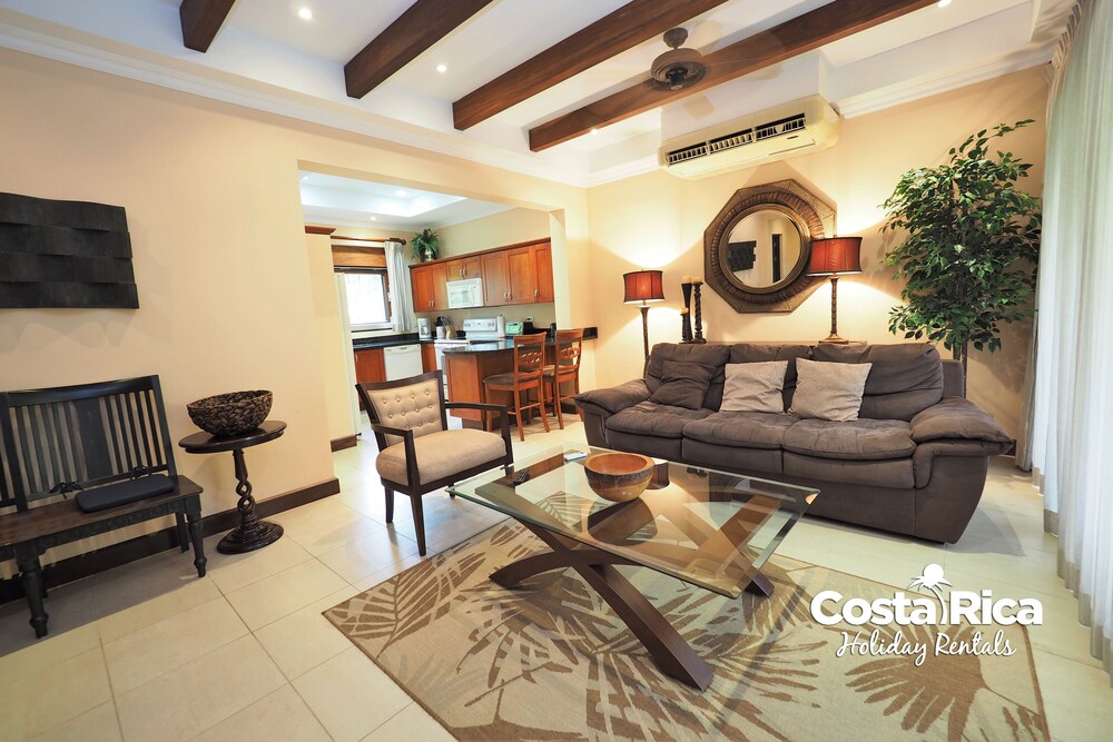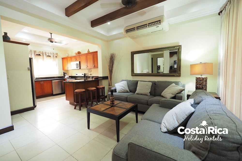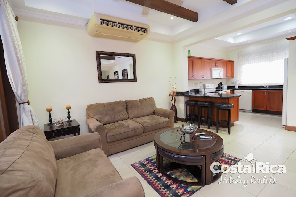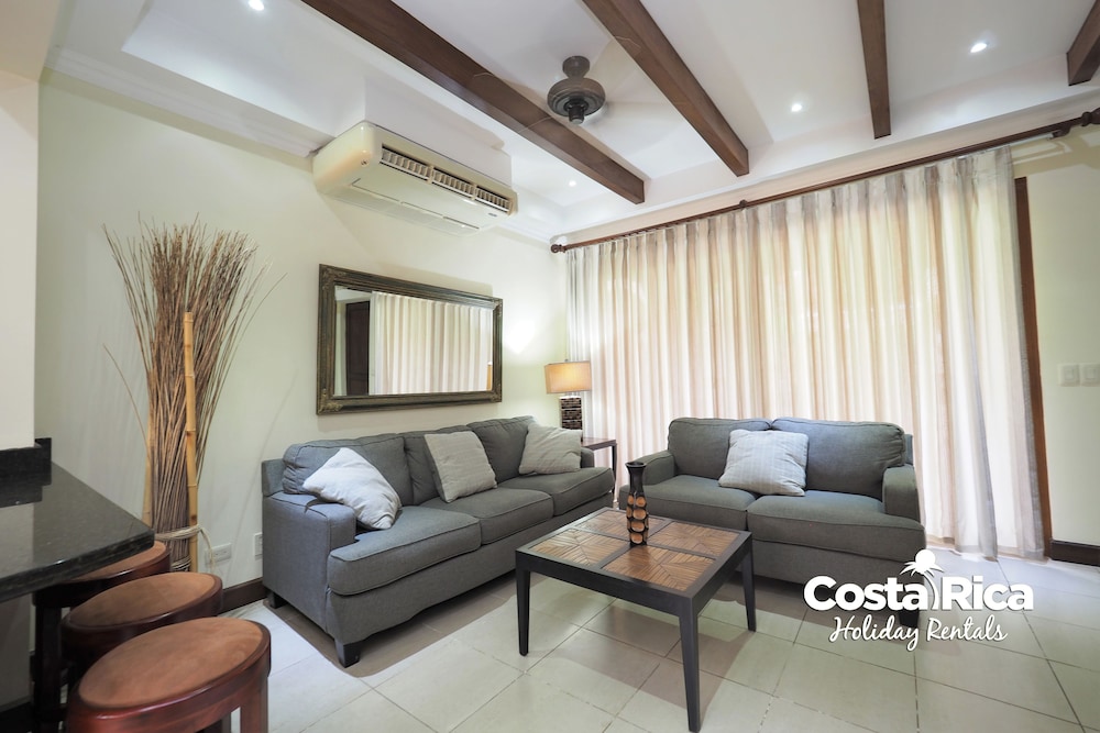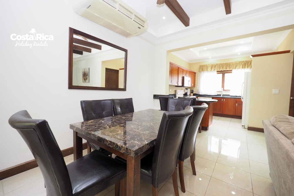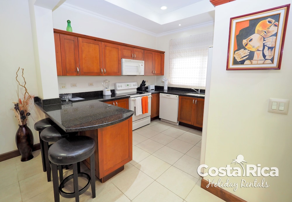 If your vacation plans are to be out doing tours and hanging on the beach, then this is a quiet place to come back to, relax and cook. Condo 16 was modern and clean. The 3 complete bathrooms are nice with the master being quite larger. All the instalations are great with a giant ac that rocks. But the overall vibe is stiffling. The pool is a bit small and dead-center of the property, so too much a focal point of all the condos. I say that because it is so quiet you feel like you cant make a noise. I think there might be many owners living there, so they probably want it that way. As a result, there is this almost militaristic surveillance of who is coming in, which I would say is good for many families coming from outside Costa Rica that are cool with the added protection. Parking was a pain (I like to come and go), because our spot was inside a gated area and I had to sometimes go looking for the morning guy to open. The night guy is on top of it though. Last thing, there is a path directly to the beach with a coded gate. I can see why they dont promote it much. You cross a small river area (aligator sign, which may just be a precaution) and turn down a path between and concrete wall and an empty property. In the dark it might be too much for some people. I was cool with it, but my family (all Costa Ricans) were not feeling it. Overall, I wouldn't return but for many first time visitors looking for peace and quiet, this might be an option.