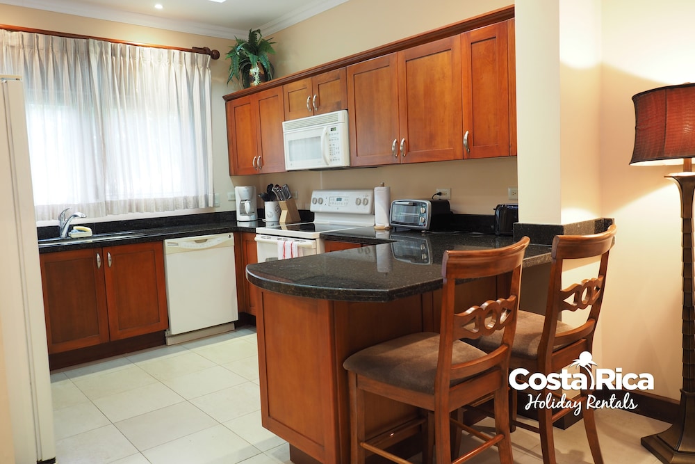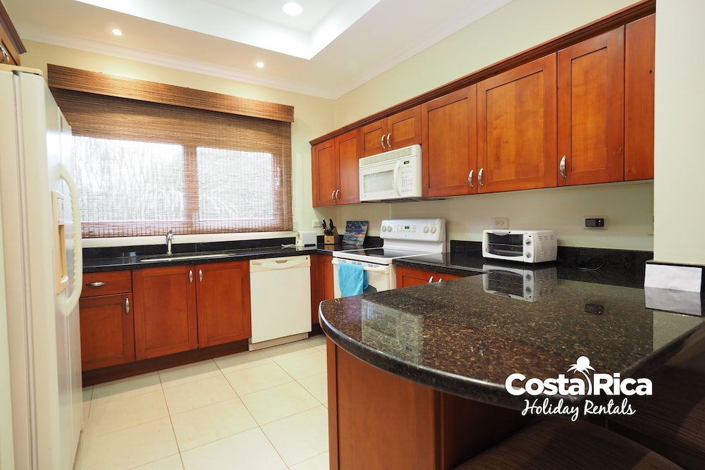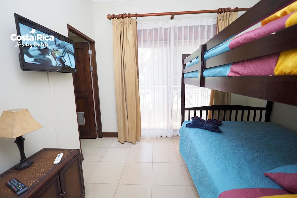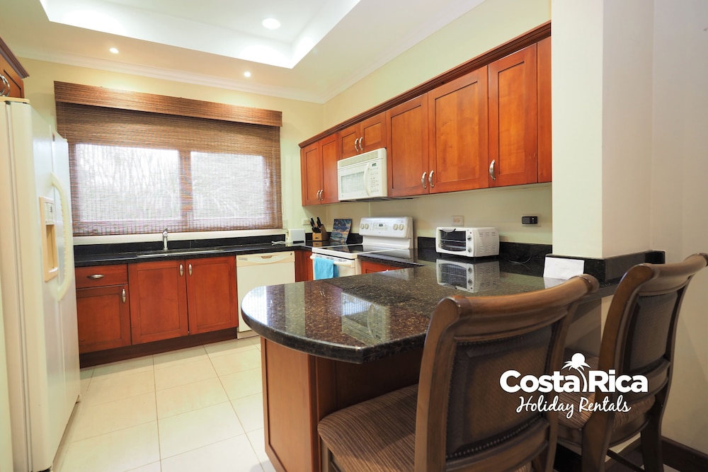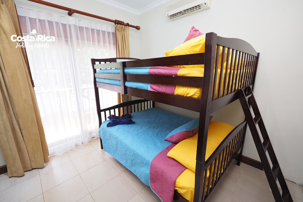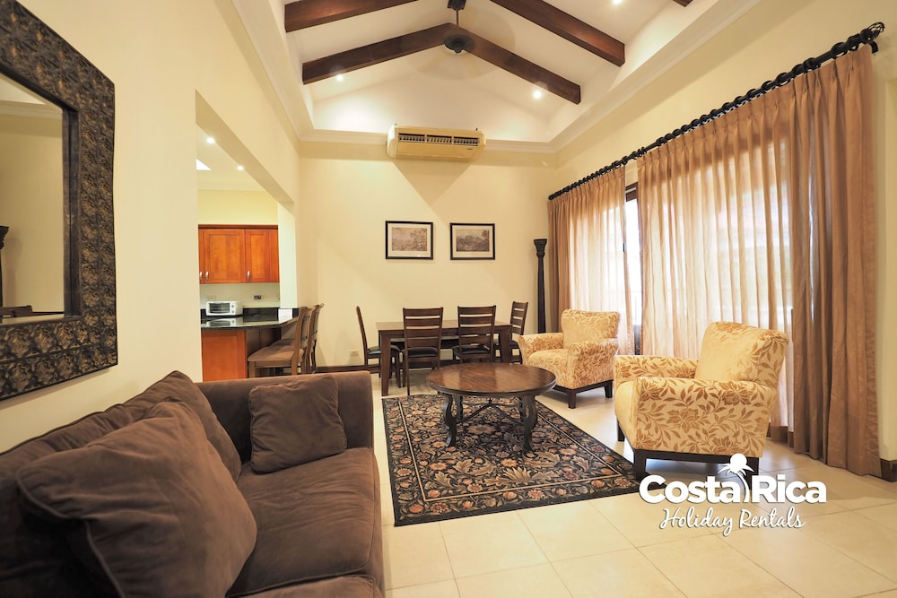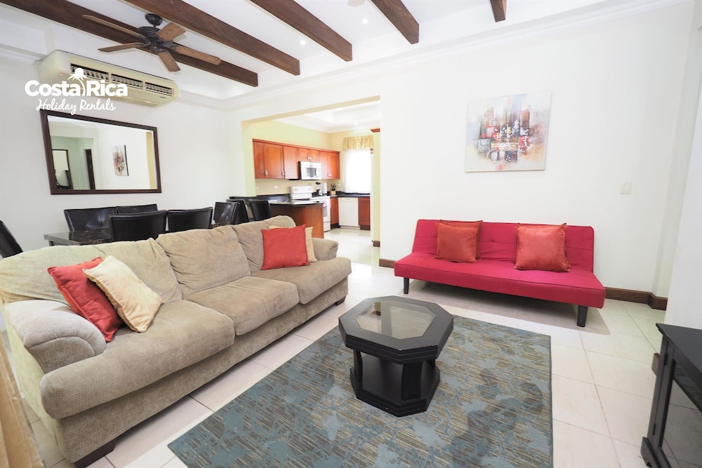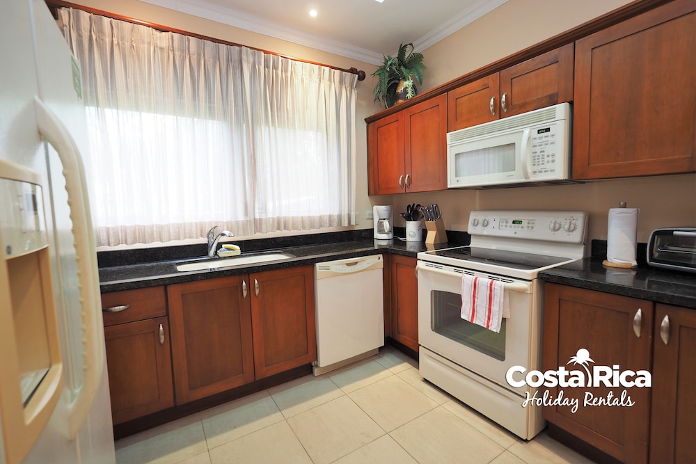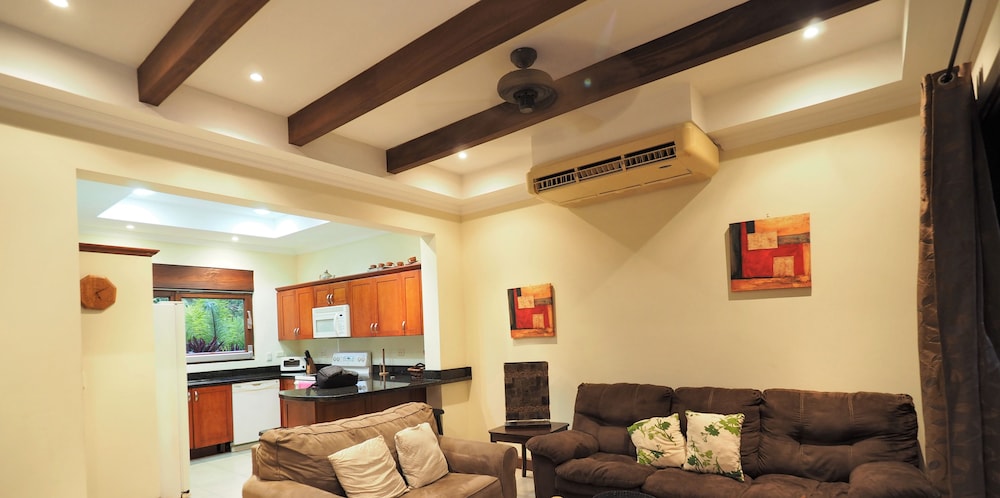 If your vacation plans are to be out doing tours and hanging on the beach, then this is a quiet place to come back to, relax and cook. Condo 16 was modern and clean. The 3 complete bathrooms are nice with the master being quite larger. All the instalations are great with a giant ac that rocks. But the overall vibe is stiffling. The pool is a bit small and dead-center of the property, so too much a focal point of all the condos. I say that because it is so quiet you feel like you cant make a noise. I think there might be many owners living there, so they probably want it that way. As a result, there is this almost militaristic surveillance of who is coming in, which I would say is good for many families coming from outside Costa Rica that are cool with the added protection. Parking was a pain (I like to come and go), because our spot was inside a gated area and I had to sometimes go looking for the morning guy to open. The night guy is on top of it though. Last thing, there is a path directly to the beach with a coded gate. I can see why they dont promote it much. You cross a small river area (aligator sign, which may just be a precaution) and turn down a path between and concrete wall and an empty property. In the dark it might be too much for some people. I was cool with it, but my family (all Costa Ricans) were not feeling it. Overall, I wouldn't return but for many first time visitors looking for peace and quiet, this might be an option.