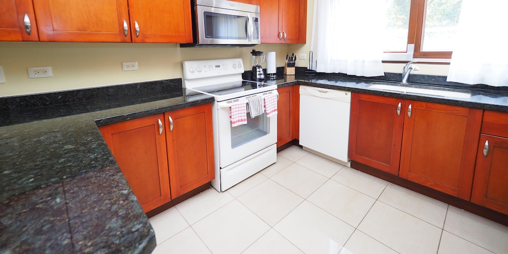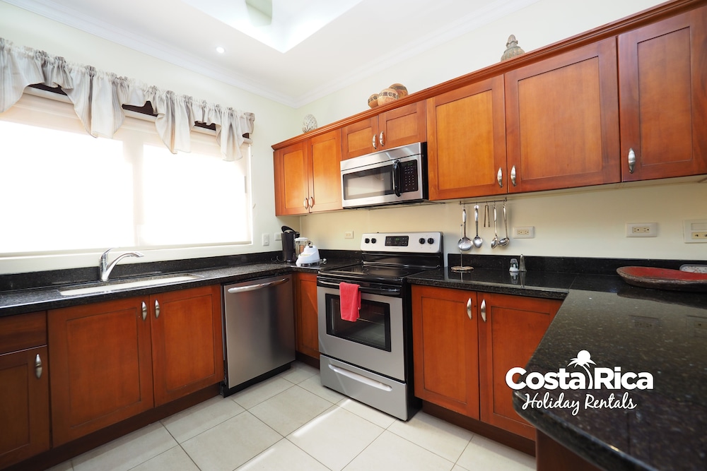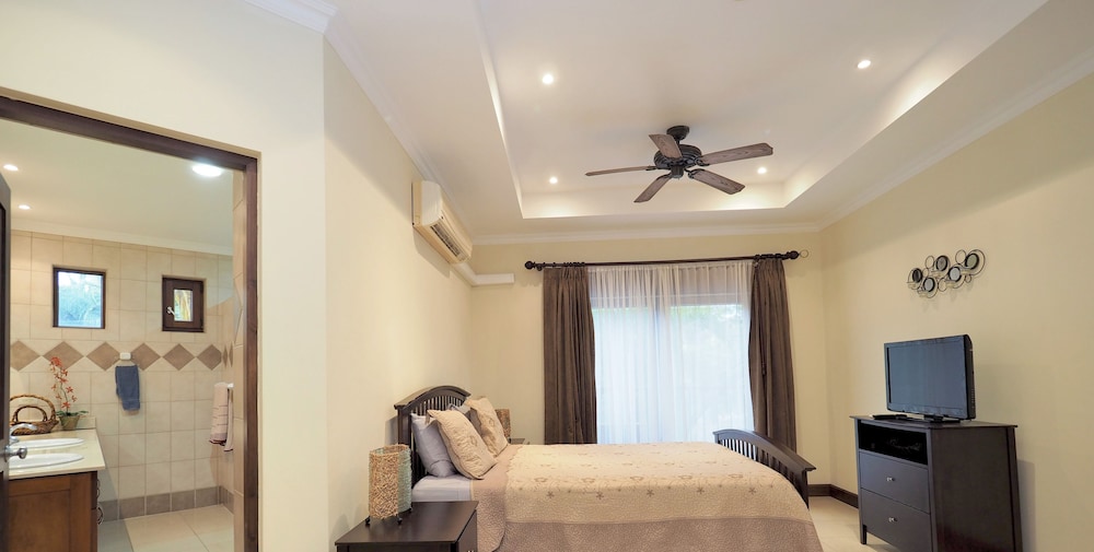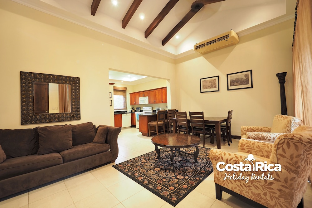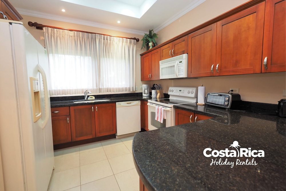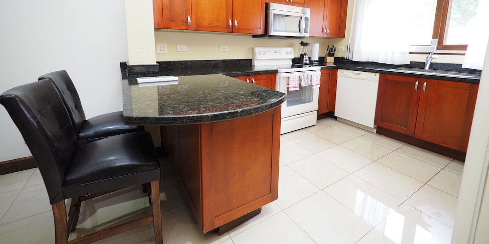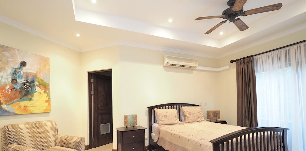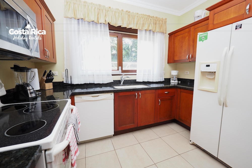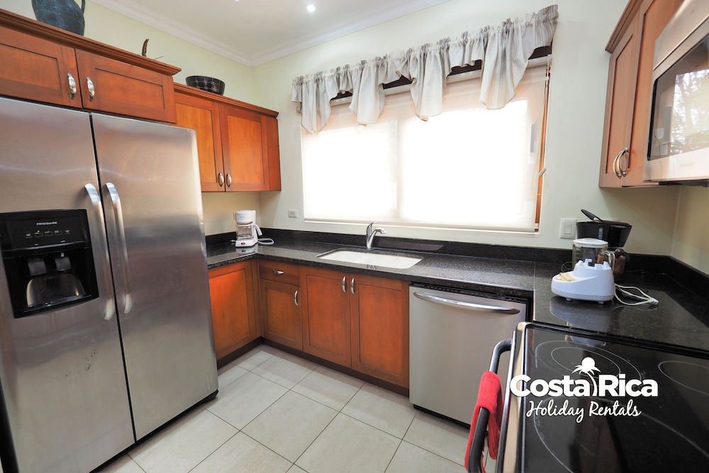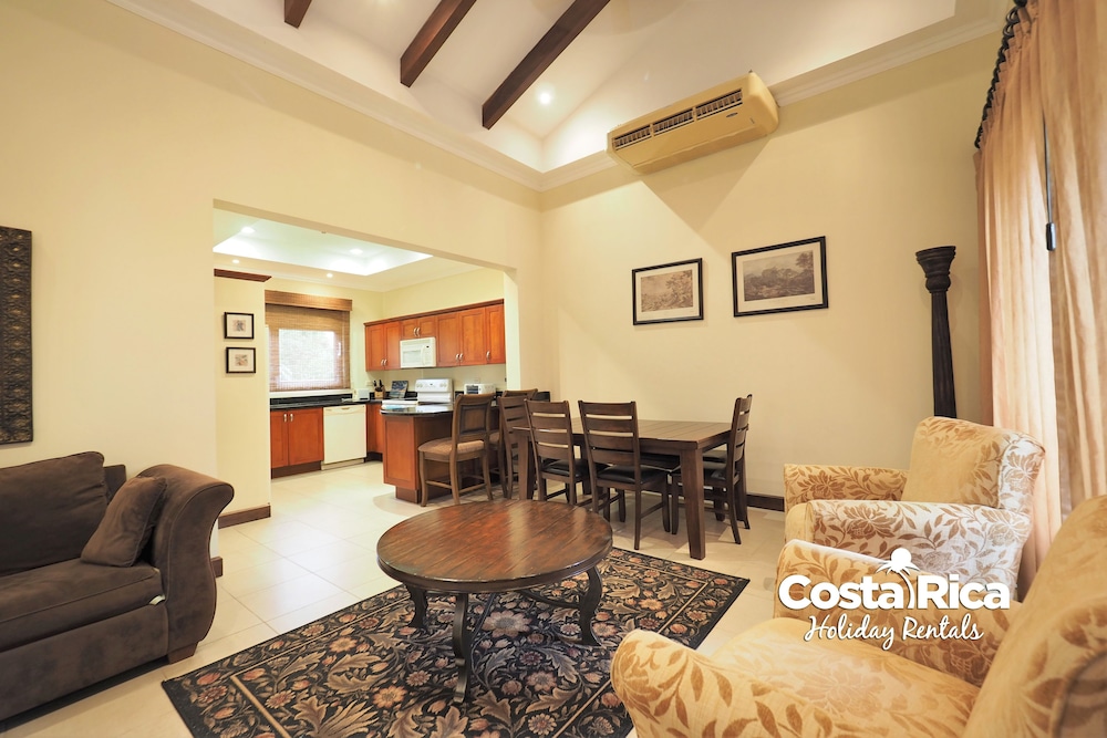 If your vacation plans are to be out doing tours and hanging on the beach, then this is a quiet place to come back to, relax and cook. Condo 16 was modern and clean. The 3 complete bathrooms are nice with the master being quite larger. All the instalations are great with a giant ac that rocks. But the overall vibe is stiffling. The pool is a bit small and dead-center of the property, so too much a focal point of all the condos. I say that because it is so quiet you feel like you cant make a noise. I think there might be many owners living there, so they probably want it that way. As a result, there is this almost militaristic surveillance of who is coming in, which I would say is good for many families coming from outside Costa Rica that are cool with the added protection. Parking was a pain (I like to come and go), because our spot was inside a gated area and I had to sometimes go looking for the morning guy to open. The night guy is on top of it though. Last thing, there is a path directly to the beach with a coded gate. I can see why they dont promote it much. You cross a small river area (aligator sign, which may just be a precaution) and turn down a path between and concrete wall and an empty property. In the dark it might be too much for some people. I was cool with it, but my family (all Costa Ricans) were not feeling it. Overall, I wouldn't return but for many first time visitors looking for peace and quiet, this might be an option.