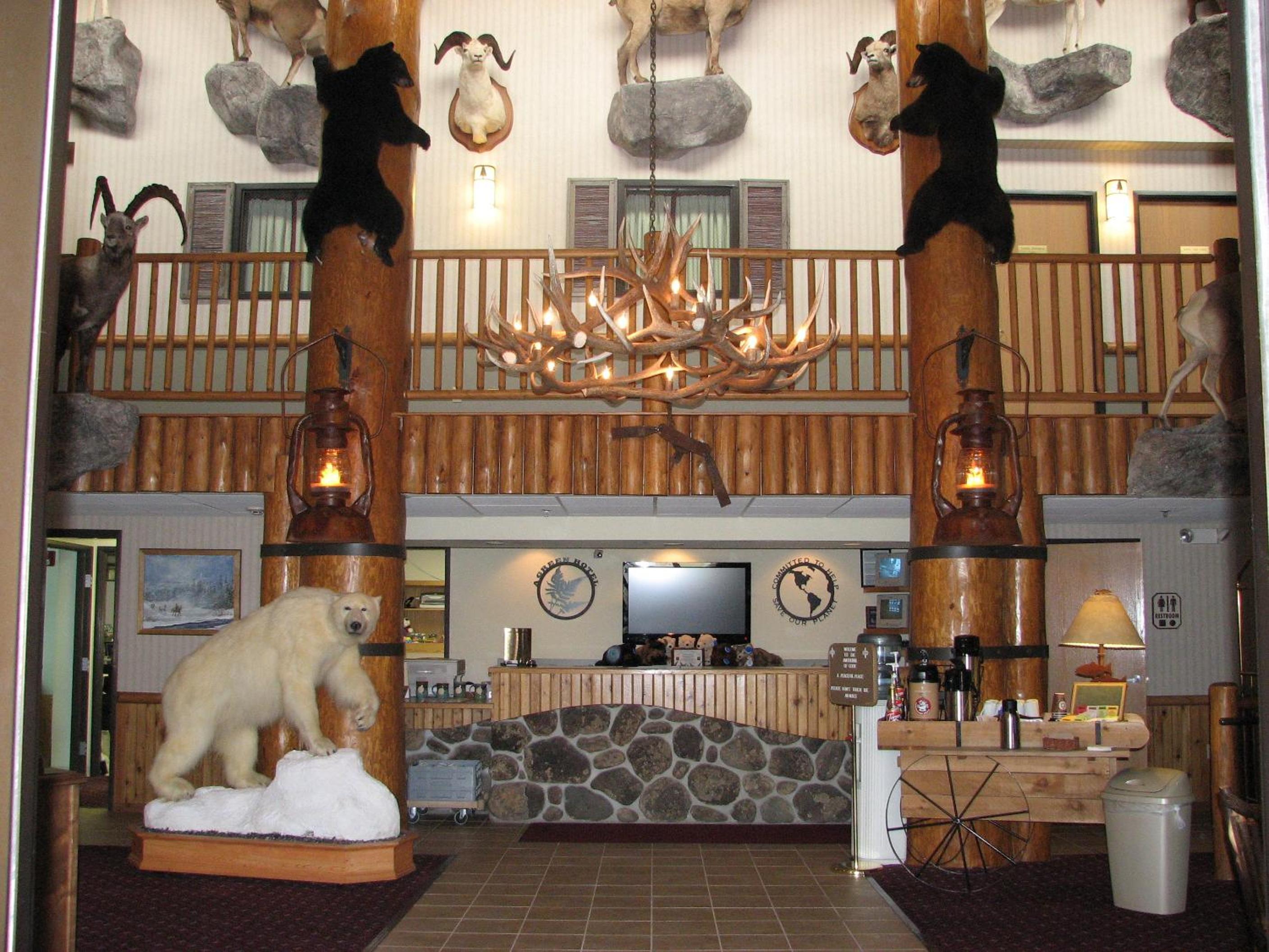 Step into our lobby adorned with big game décor, setting the tone for a memorable stay at AmericInn by Wyndham Cody.