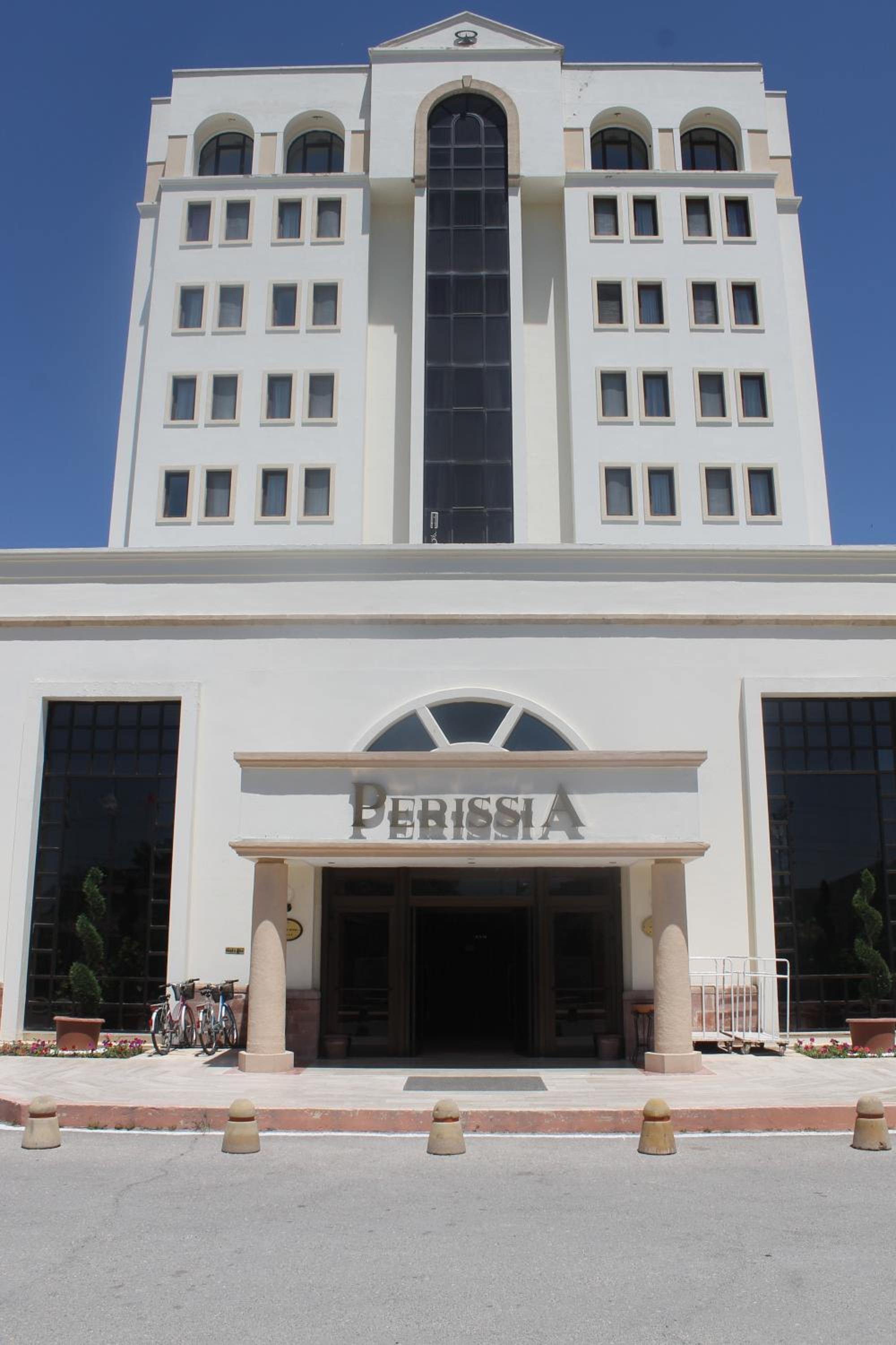 The Perissia’s outdoor pool is surrounded by lawn and terraces for relaxation. Tennis and basketball courts as well as an indoor games room are available for guests’ amusement.