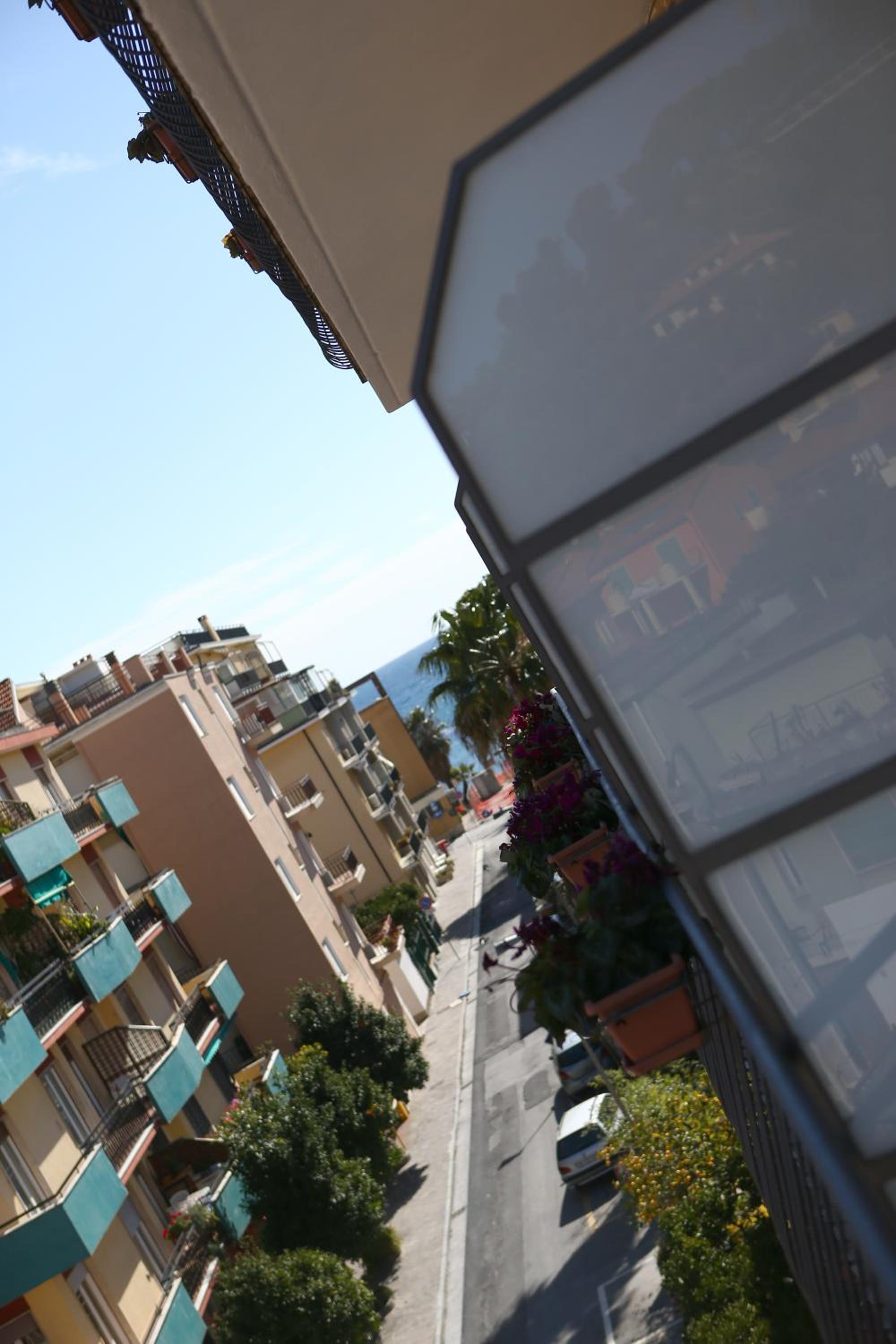 Sur le balcon la vue sur le bâtiment d’en face est moche et c’est bruyant
