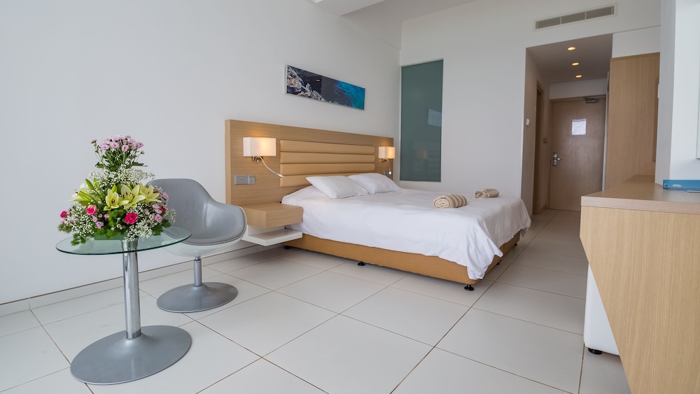 We were so pleased with the ocean-front, spacious, clean room with balcony. The staff was friendly. The location is beach front, next to the long boardwalk for strolls and so convenient to the main street (so many shops and restaurants!). The onsite restaurant had themed dinner nights. The hotel Spa offered a great, reasonably priced massage. The hotel is about a 45 min. drive from the Larnaca but we found George's Taxi was professional and the best price to/from the airport.