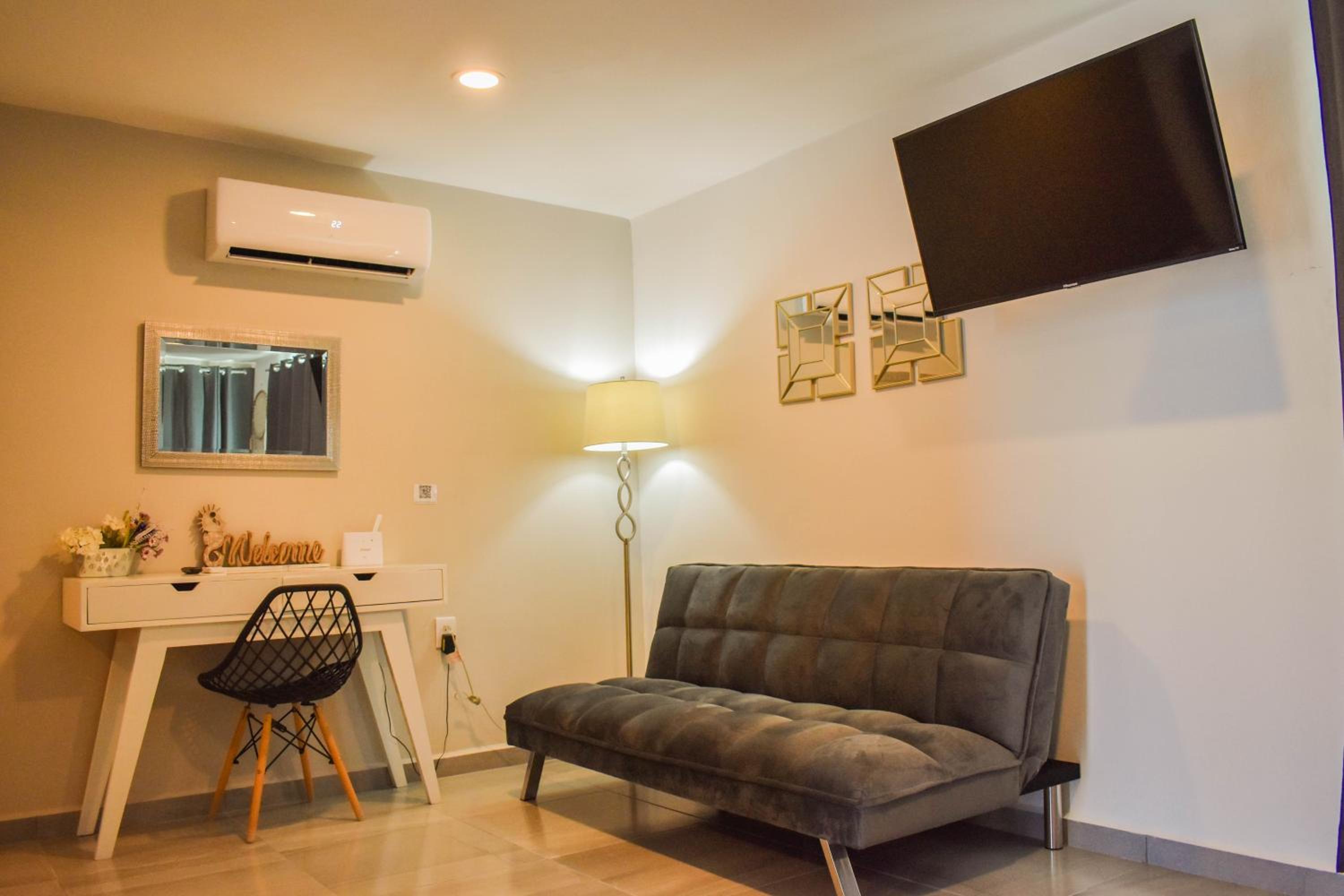 Está bien ubicado, es seguro y accesible. Está cerca de varios negocios de conveniencia, de comida, y atractivos nocturnos, a una cuadra del boulevard y de plazas comerciales.