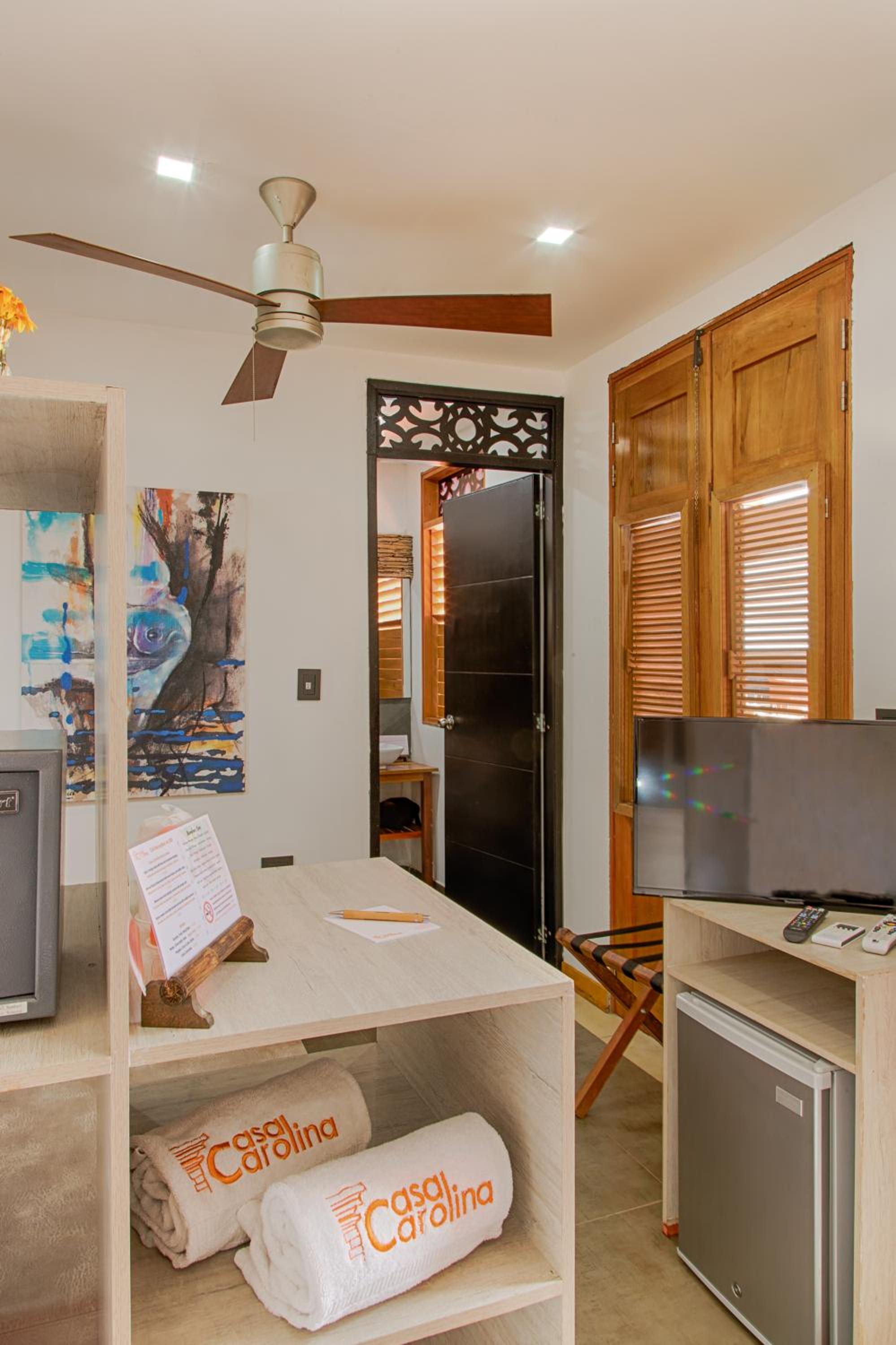 The air-conditioned rooms, suites, and apartments at Hotel Boutique Casa Carolina offer a blend of modern amenities and comfort, including flat-screen satellite TVs, free Wi-Fi, and bluetooth sound systems. With a minibar, safety deposit box, and private bathrooms featuring hot showers and free toiletries, guests are sure to feel pampered during their stay.