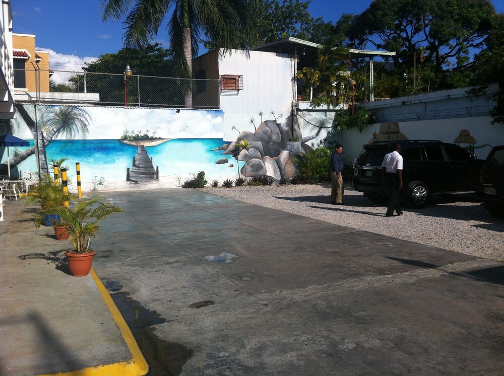 This hotel stay ranks at the top of my list of hotels from hell. I should have left after the first night, but I didn't. I feel foolish, but have learned a lesson: Never, never, ever base where you stay ( Dominican Republic) on a few reviews, that are skewed toward the favorable (this includes those PR photos of the place). It's next to some sort of bottled water dispensing business. So, of course it's noisy throughout the day. I had the misfortune of having a room (#9) next to the a/c fan of the bldg. It ran 24/7, sounded like a single engine prop airplane.