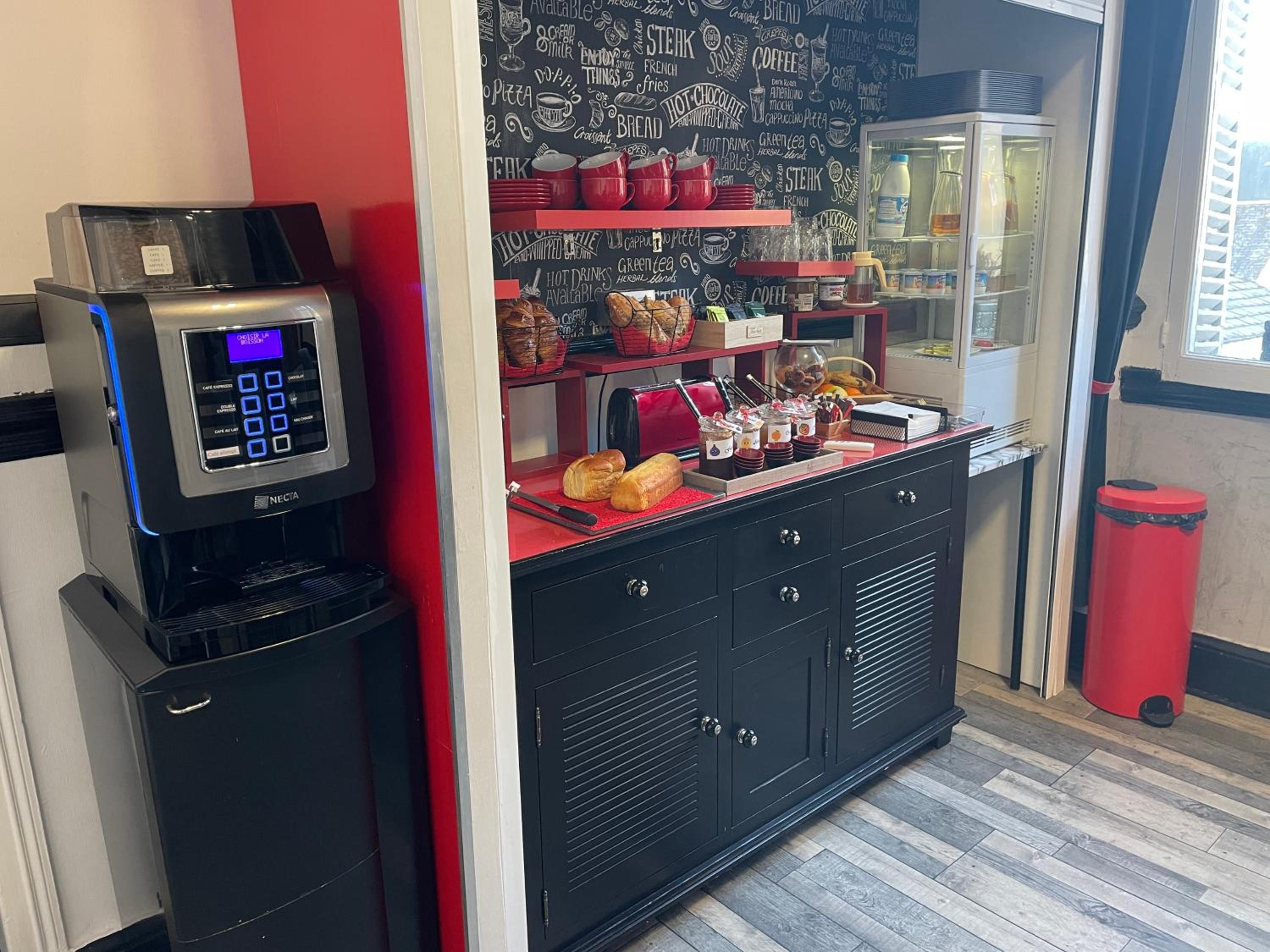 Emplacement idéal près de la mairie et non loin de la gare à pieds. Chambre quadruple au décor et à l'agencement agréable. Beau bureau entre les deux grands lits. Personnel souriant et serviable. Bon petit déjeuner.