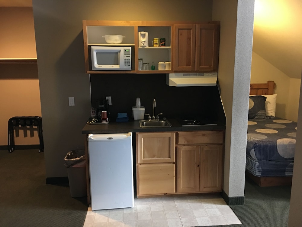 My family stayed in a 5 bed family room at the motel. It was very spacious, and the beds were comfortable. The kitchenette had a table, 2 burners, a refrigerator, sink, and everything we needed to cook and serve food. I was very pleased with the room and the personable front desk staff who were very helpful.