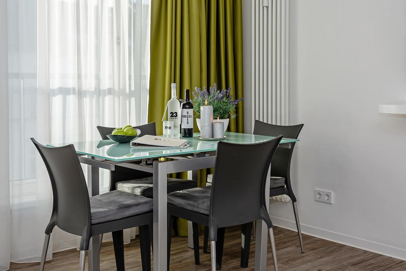 Location is excellent between Mitte & Prenzlauerberg, well connected by tram and U-bahn, Many shops and restaurants around. The apartment was one of the few that was big enough for our party of four. Everything worked out super smoothly with payment, check in etc. Friendly staff.