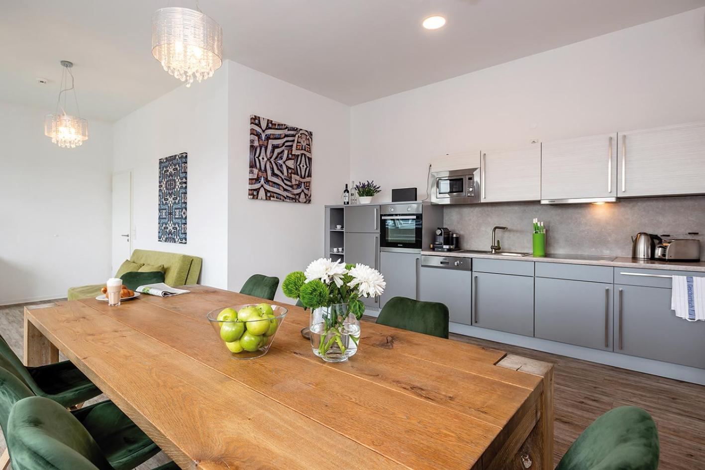 Indulge in a meal at nearby restaurants or prepare your own in the fully equipped kitchen. For added convenience, we offer bicycle rental services and assistance with online check-in. Experience a seamless stay at Apartments Rosenthal Residence.