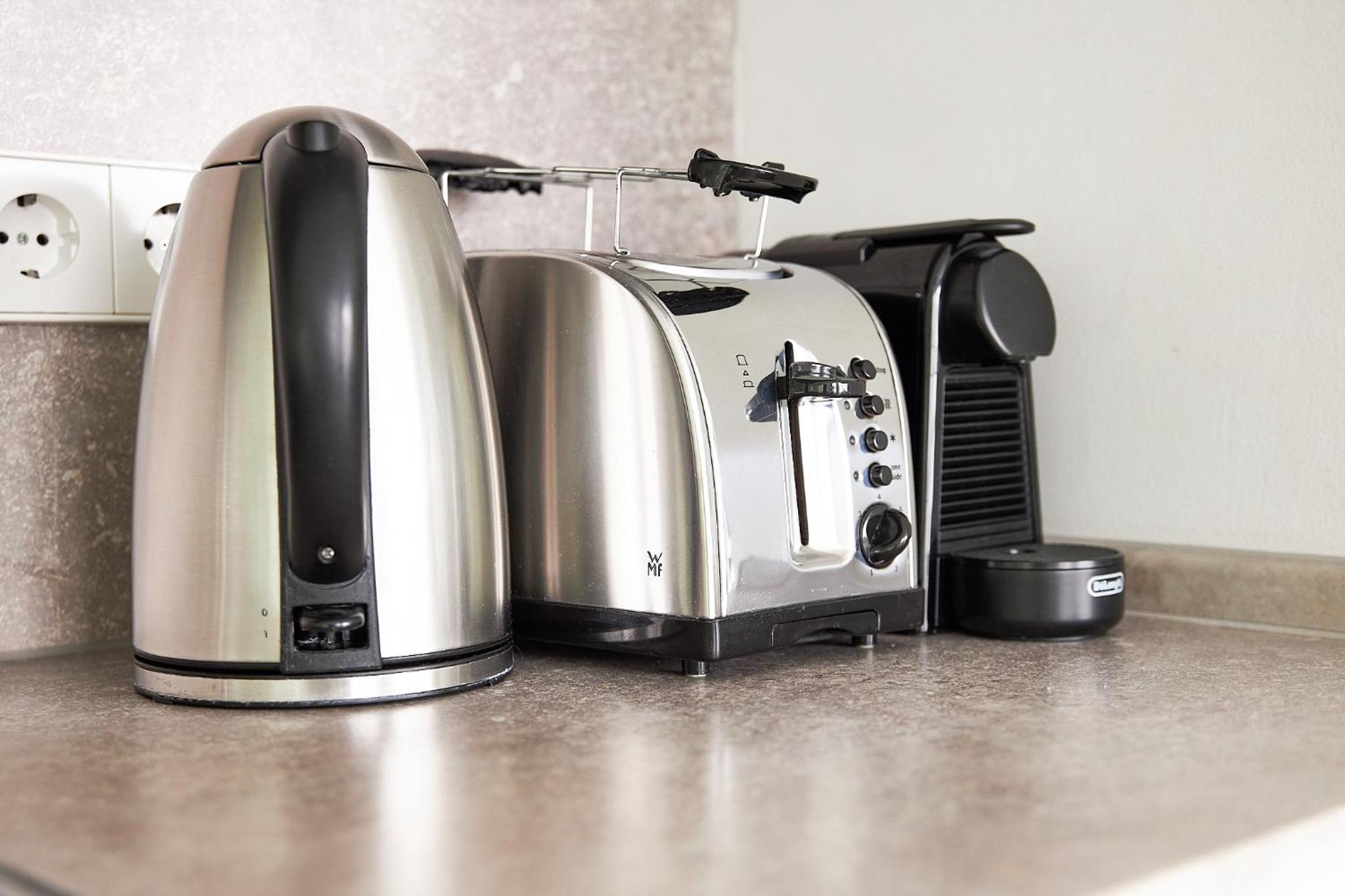 Fußboden unerwartet verschmutzt, Kaffeemaschine in keinem guten Hygienezustand, Tür des Geschirrspülers öffnet nicht vollständig