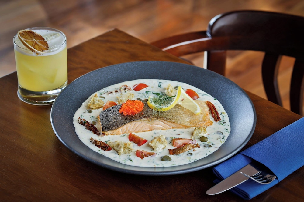 Savor exquisite international cuisine at our on-site restaurant, Up and Below, or relish the ease of 24-hour room service. Don’t miss a drink at our poolside bar, or indulge in delightful snacks from our cafe.