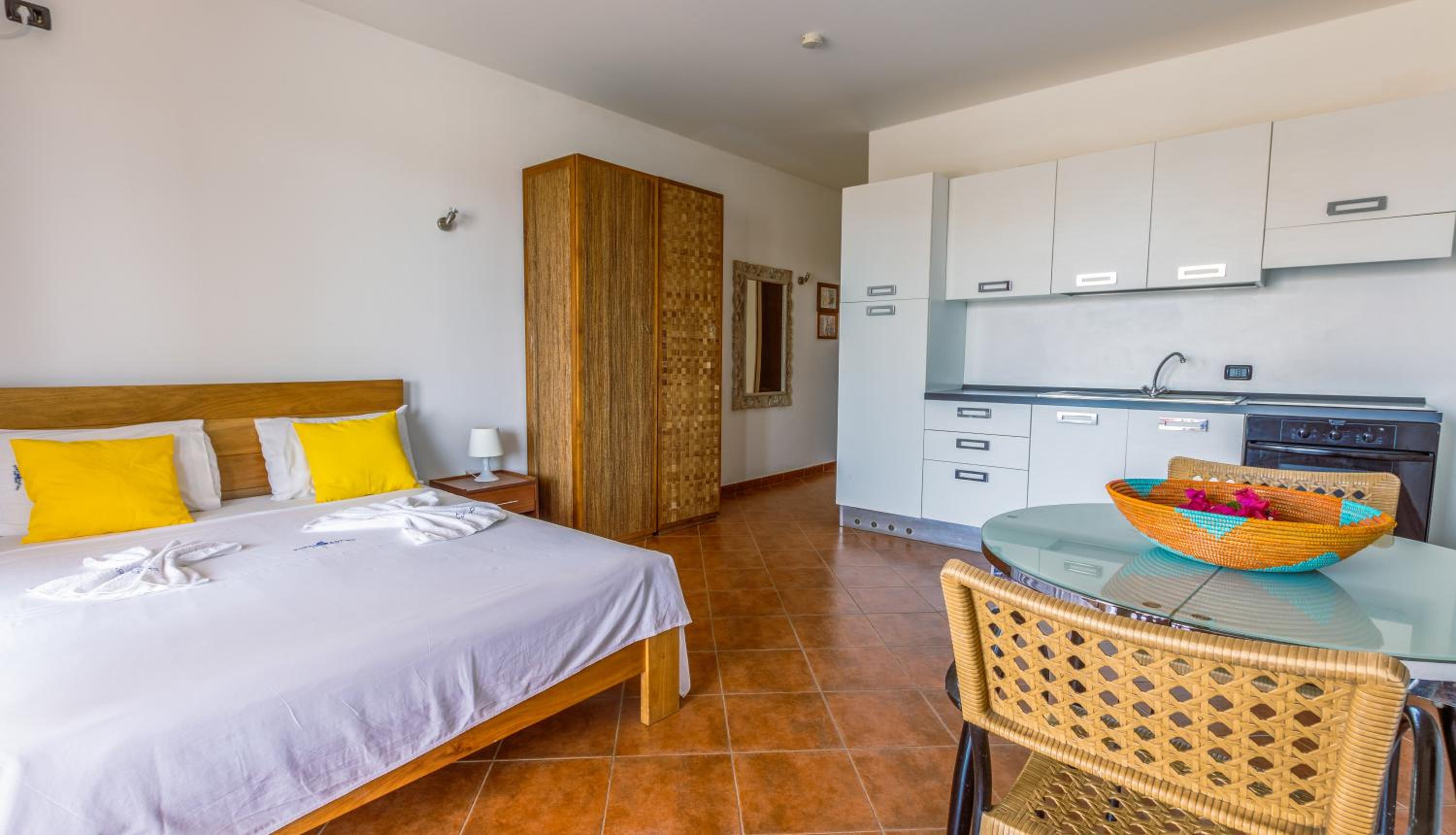 El check-in no fue el correcto. Aunque llegamos de madrugada debido a los vuelos, el check-in no se correspondió con la reserva que habíamos efectuado. Nos pusieron en una habitación alta, oscura y sin ningún parecido a lo reservado. La cama estaba escaleras arriba y era de medio techo, imposible ponerse de pie sin darse un buen golpe. La terraza mínima, nada que ver con la reserva que habíamos hecho, ni tampoco nada del resto del lugar. Las cortinas estaban llenas de insectos....creemos eran termitas. Nuestra reserva era para 14 noches y en esta habitación no lo vimos posible. Dormimos y por la mañana pedimos una se adecuase al precio y a la reserva que habíamos hecho, después de esperar unas horas nos reubicaron en una adecuada a nuestra reserva y precio contratado. Agradecidos al personal de check-in de la mañana y al trabajo correcto que efectuaron, gracias al cual pudimos pasar unas justas y correctas vacaciones, sin tener que buscar otro alojamiento.