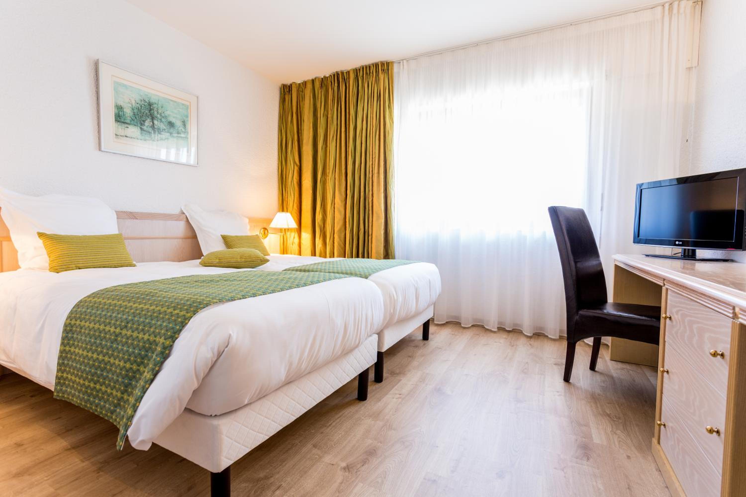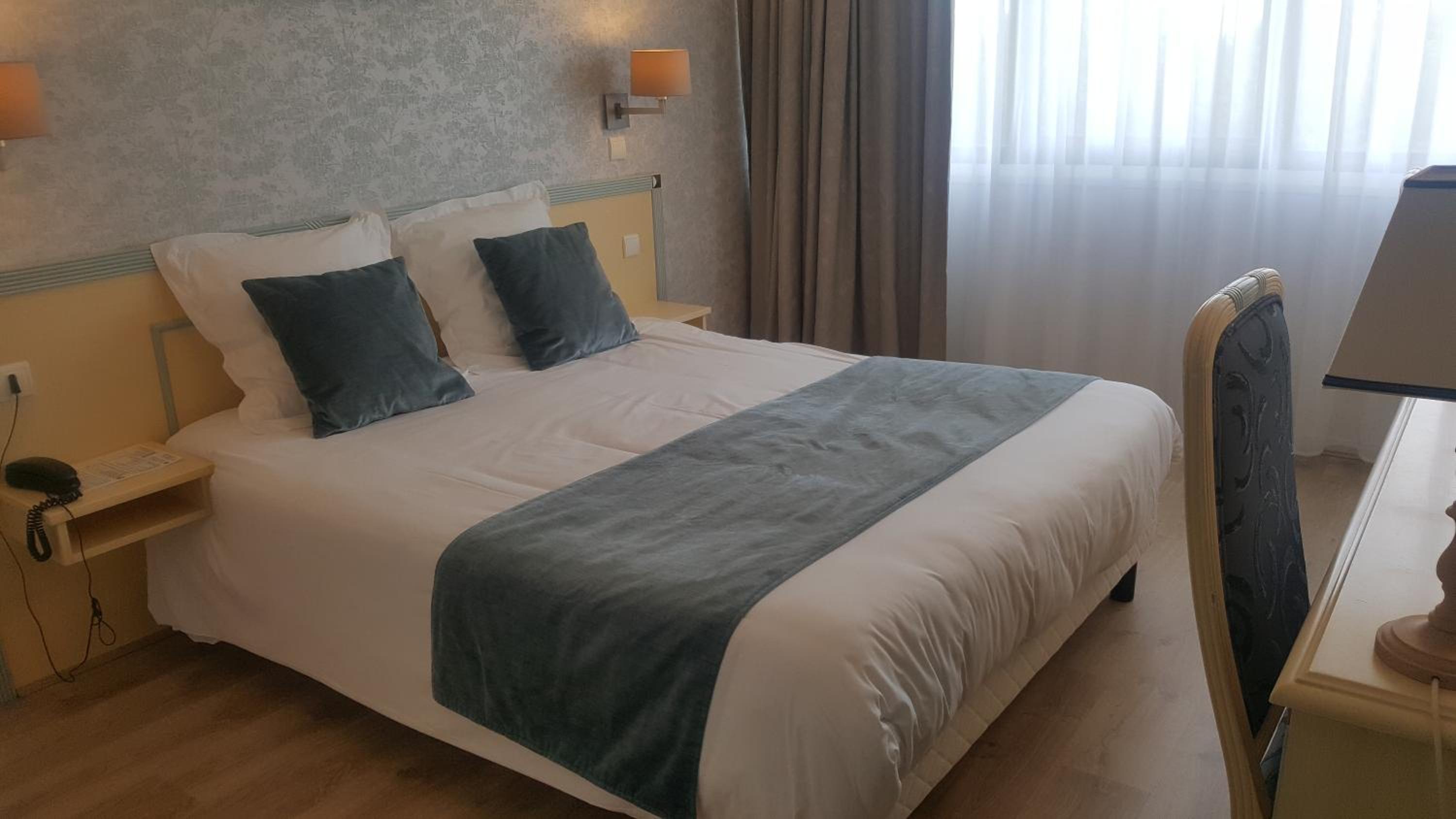 Emplacement au calme bien situé pour visiter, parking . chambre correcte et grande, même si décoration un peu vieillotte restaurant très bien à côté.