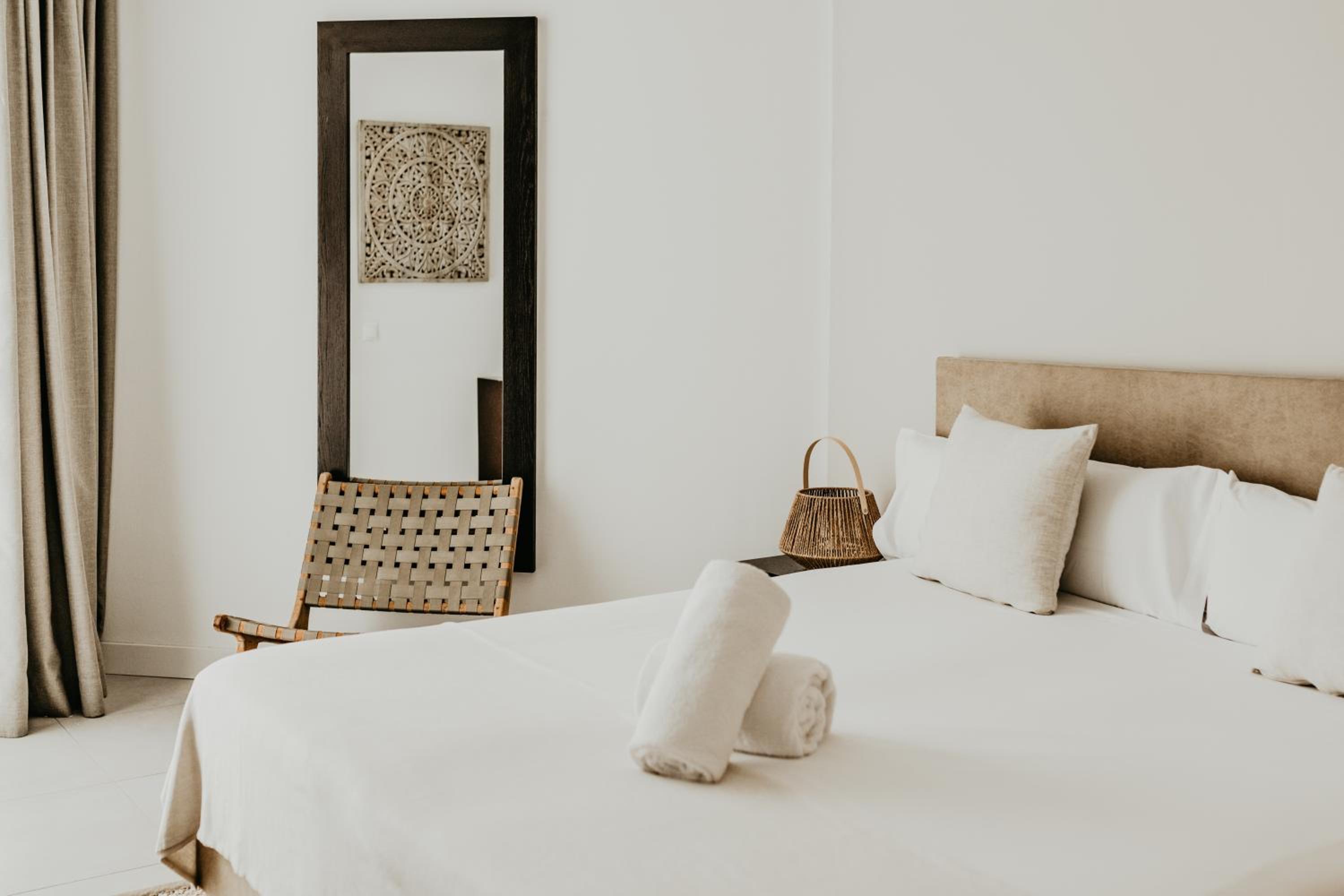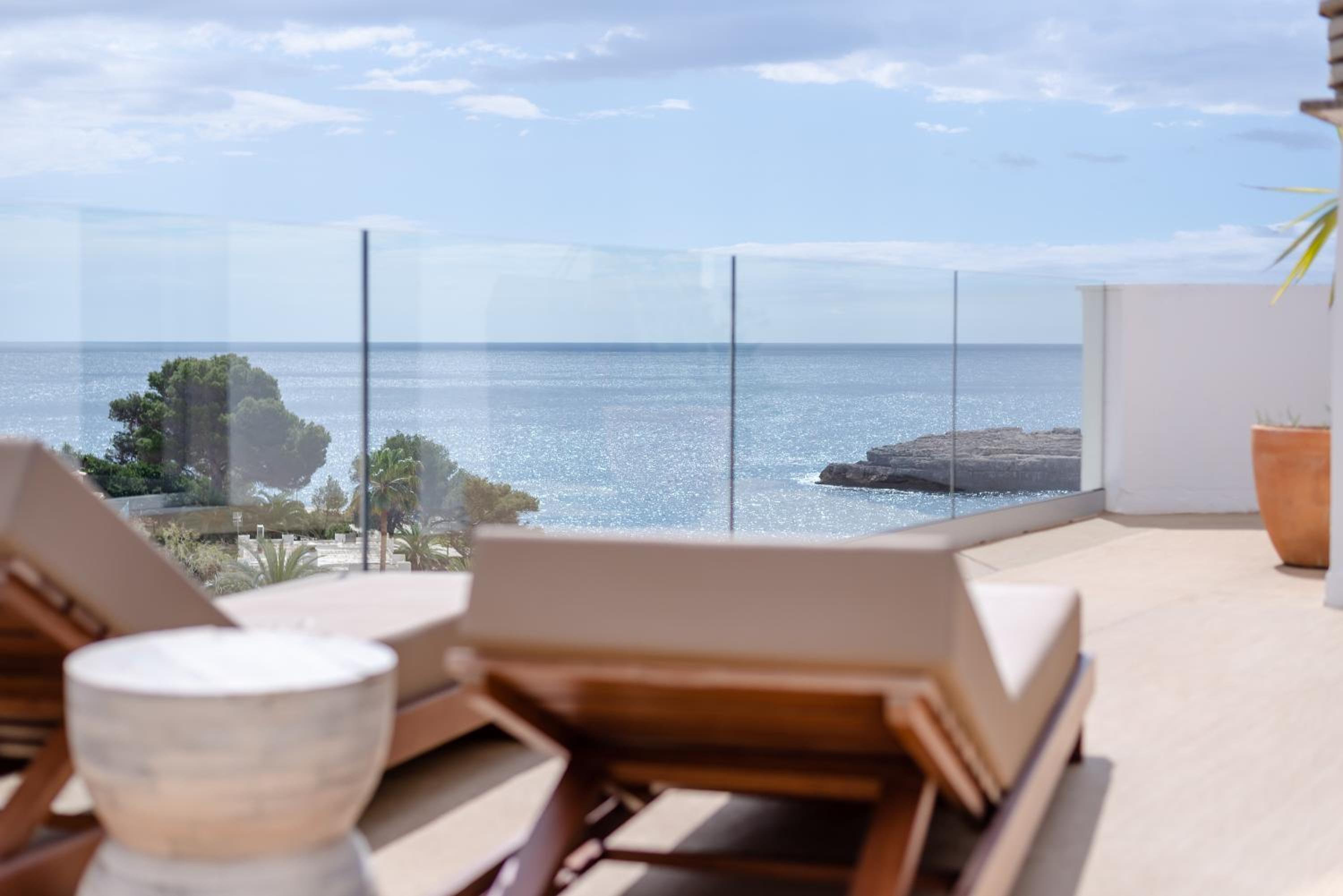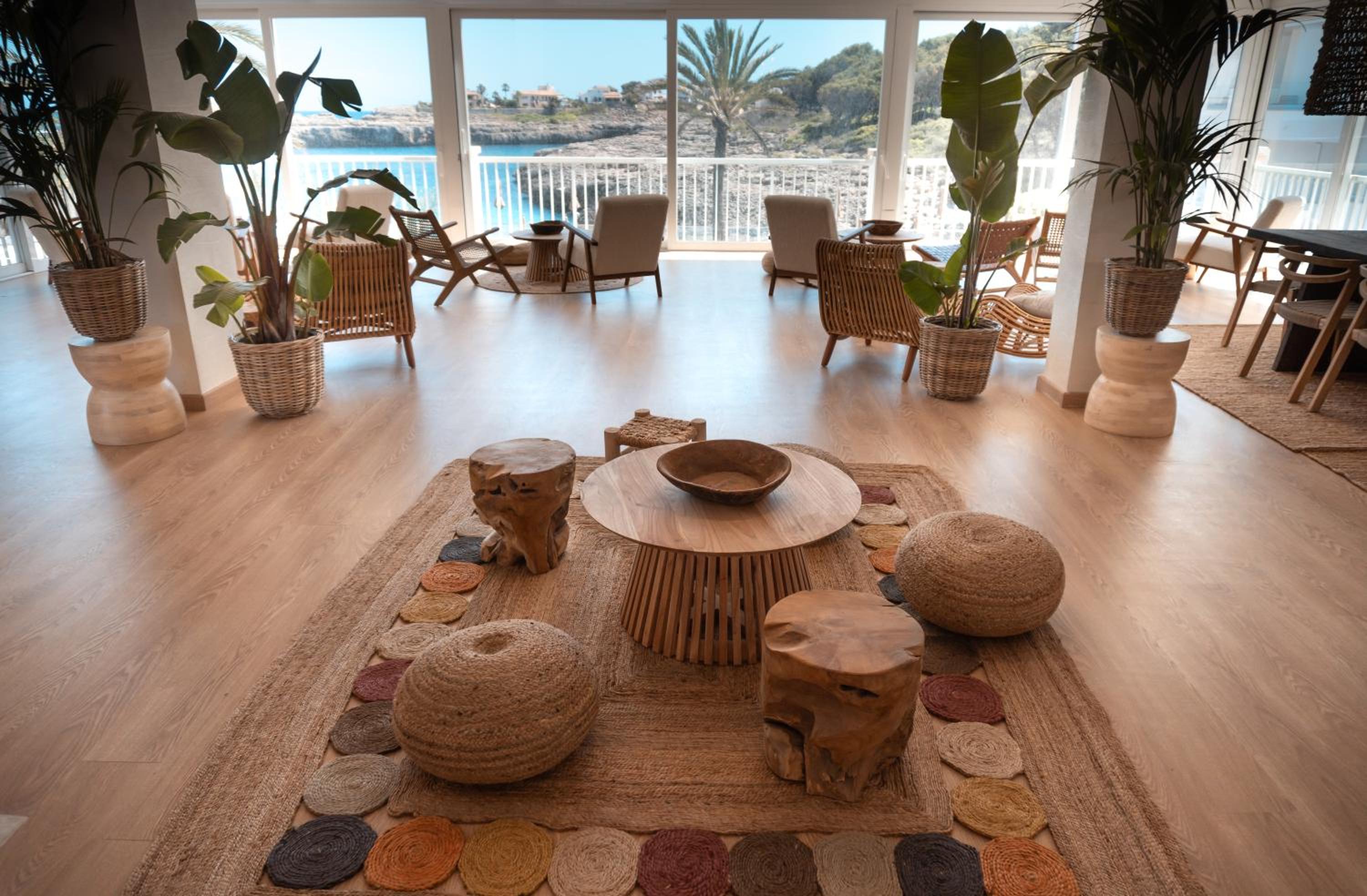 Die Bucht am Hotel und die Zimmereinrichtung.