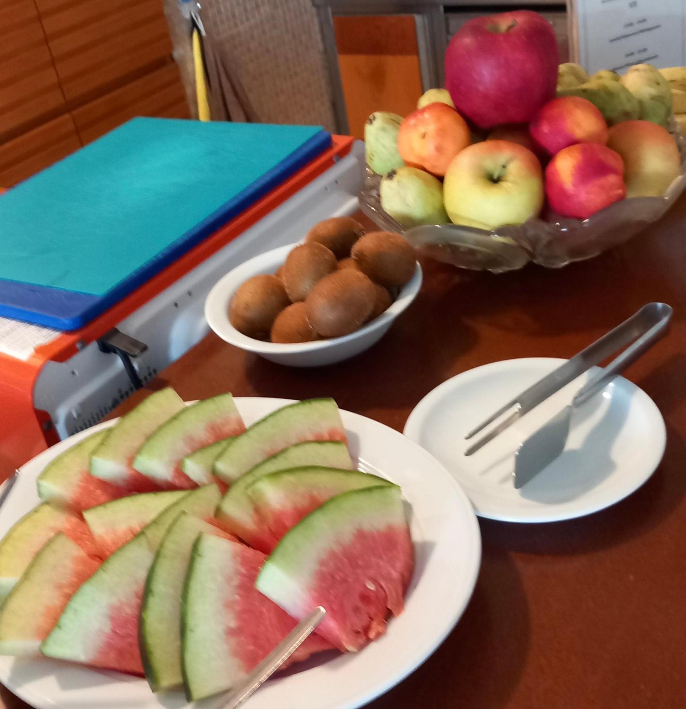 Frühstücksbüffet. Überaus freundliche Gastgeber, die sogar ein kleines Abschiedsgeschenk überreichten.