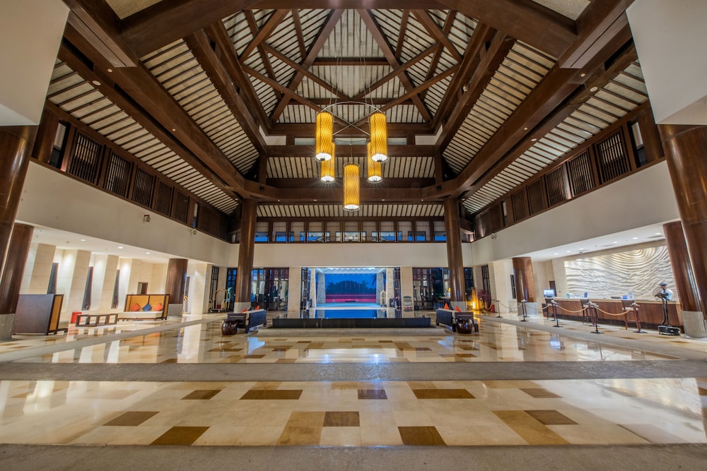 Beautiful resort with multiple pools in a tropical setting. Buffet available as well as a sit down Chinese restaurant. They offer a BBQ late at night down by the sea but small portions for the price. If you like a quiet place where you can just relax this is excellent. Very romantic.