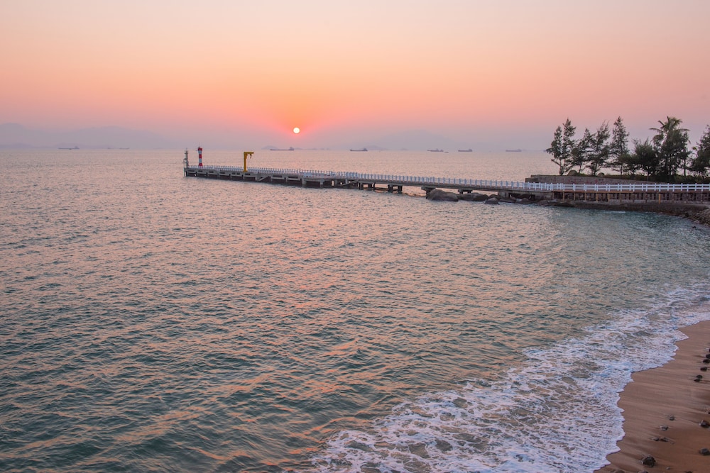 The hotel is in view of the Daya Bay Nuclear Power Plant. In fact, it's the only thing you can see as you overlook what's a poor excuse for a beach. The plant literally within 5 km (3.11 mi) of the pools and beach. The food was terrible; everything tasted like seafood. The air conditioning was malfunctioning, but this was fixed by a repairperson. In the end, be warned. This hotel has employed a photographer who could only be described as a genius for making the hotel not look like the bad experience that awaits you.