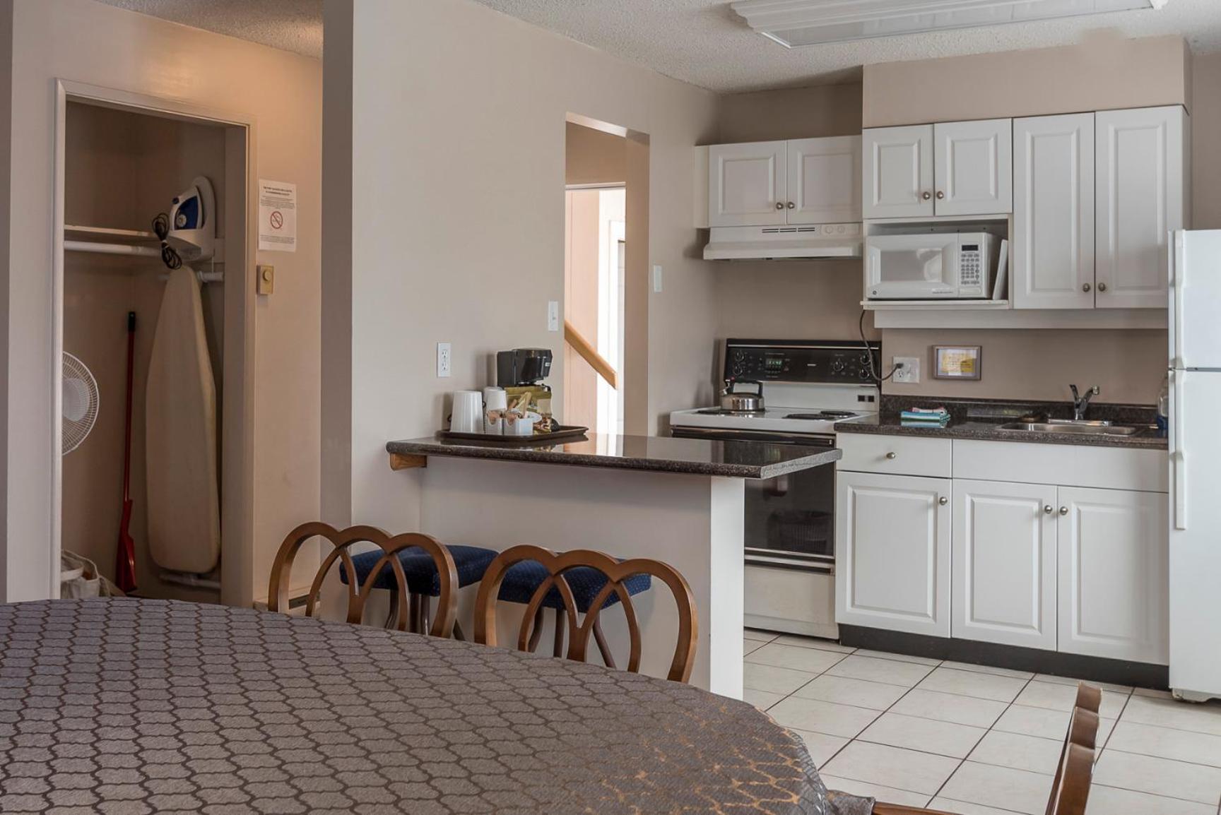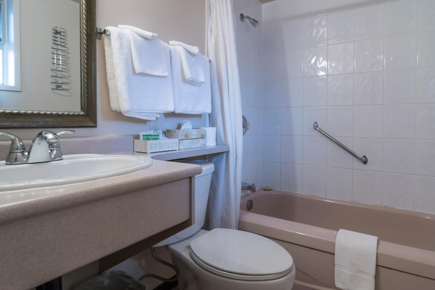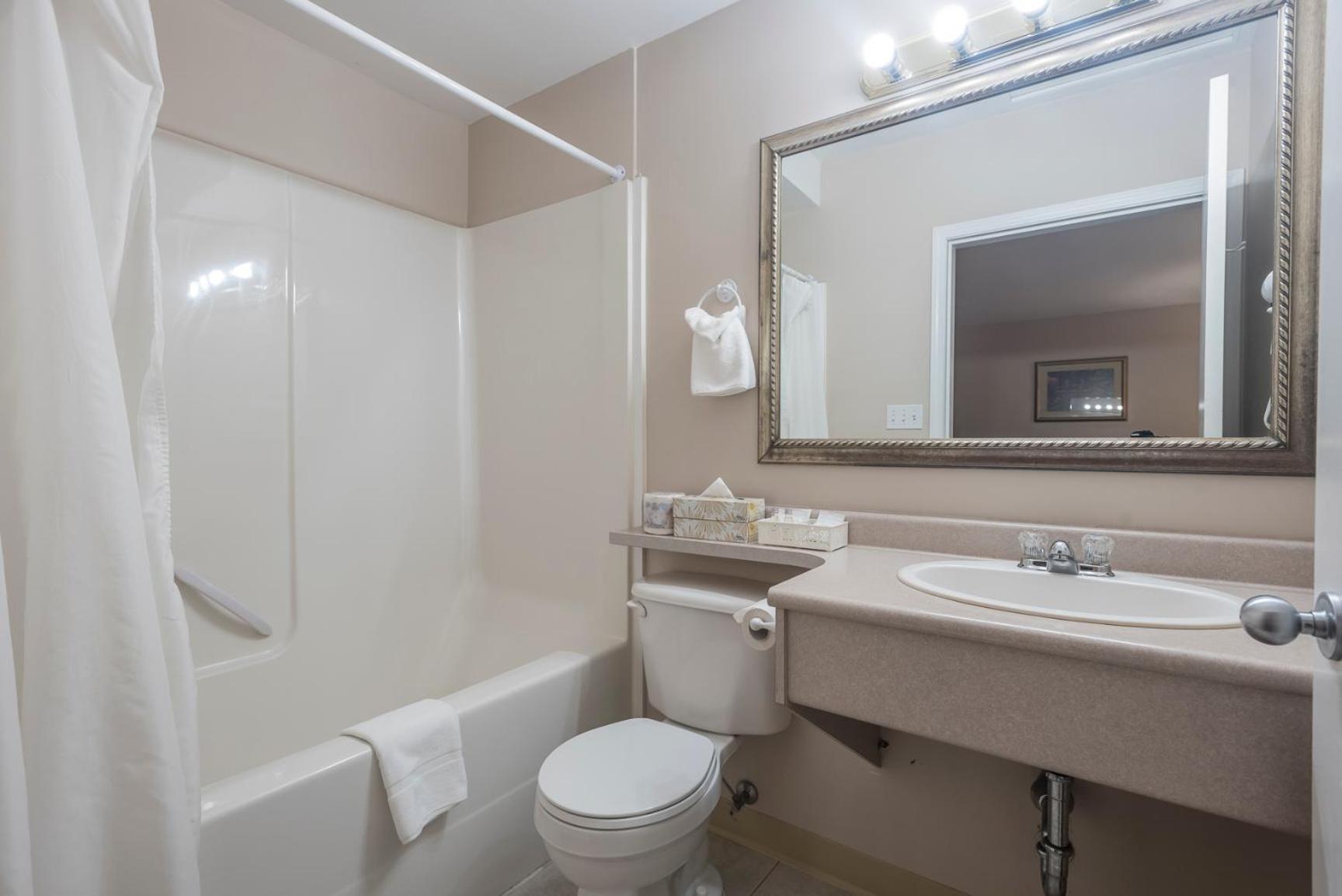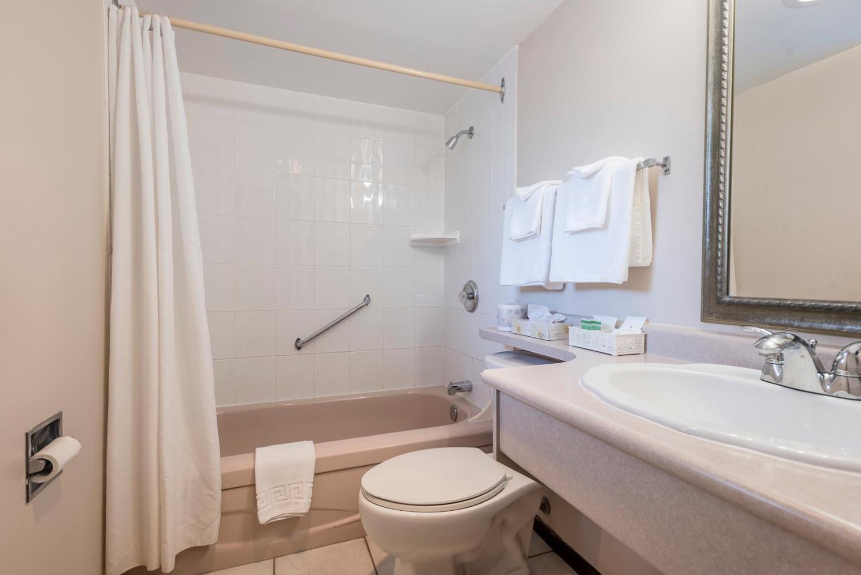 Comfortable Rooms with Modern Touches: Unwind in rooms equipped with flat-screen cable TV, free WiFi, and convenient amenities like a coffee maker, fridge, and work desk. Everything you need for a comfortable stay.