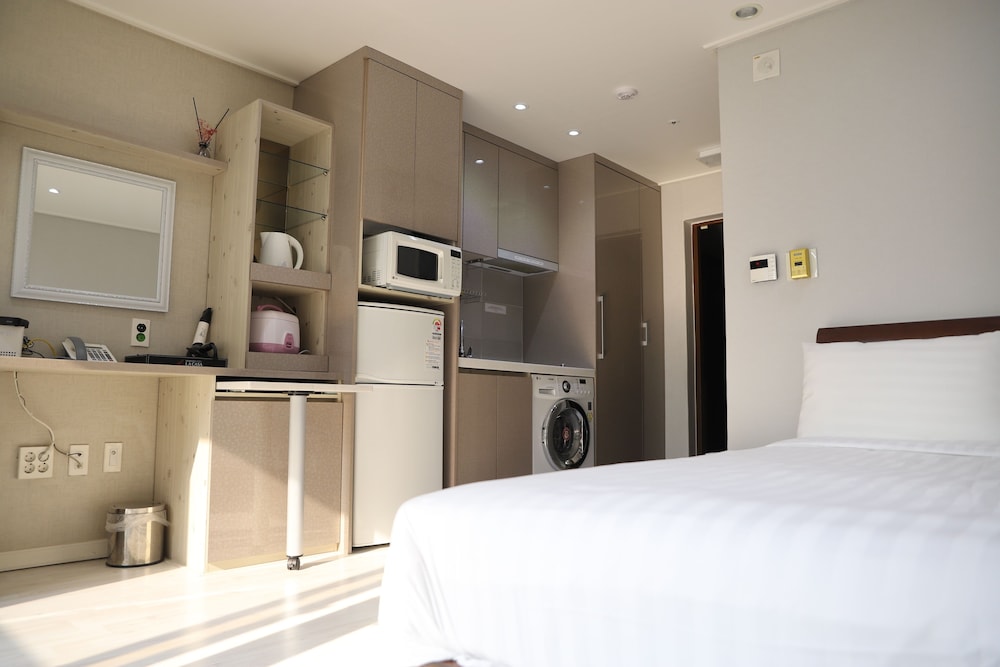 신축아님 감안하고 시청 관공서등이 있어 깨끗하고 안심되고 주변 인프라 갤러리아 시네마 식당등 잘갖춰져서 머물기좋음 타워주차장있었으나 주변 공영주차장에 주차했고 직원들 친절하고 객실내 풀옵션으로 지내는데 불편함이 없음 장기투숙에 적격 시설이 낡은만큼 청결에 좀더 신경써주면함
