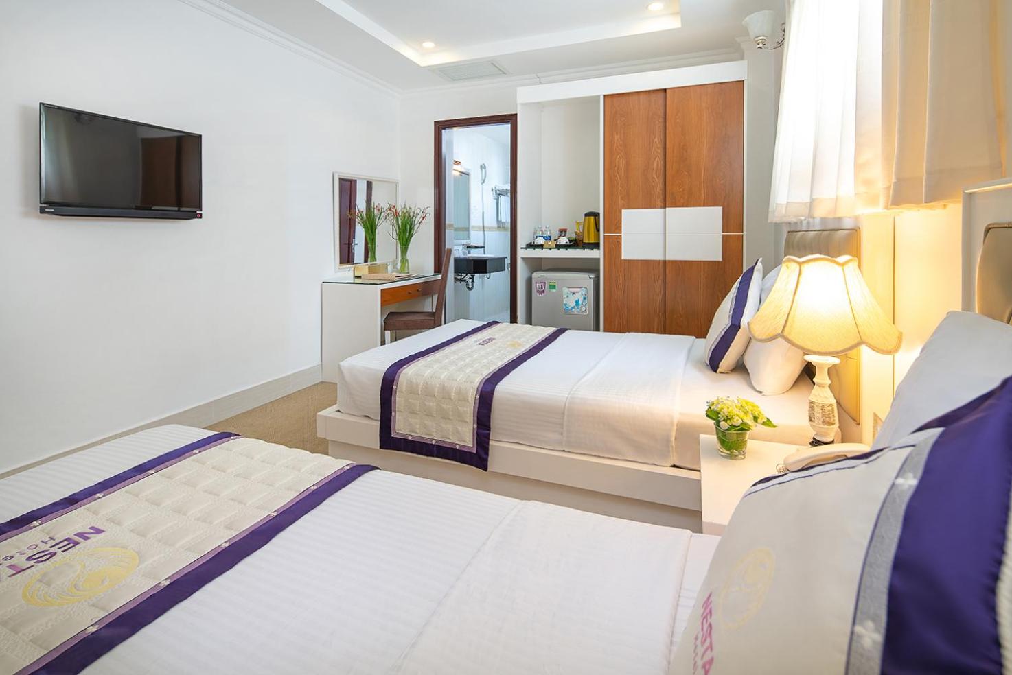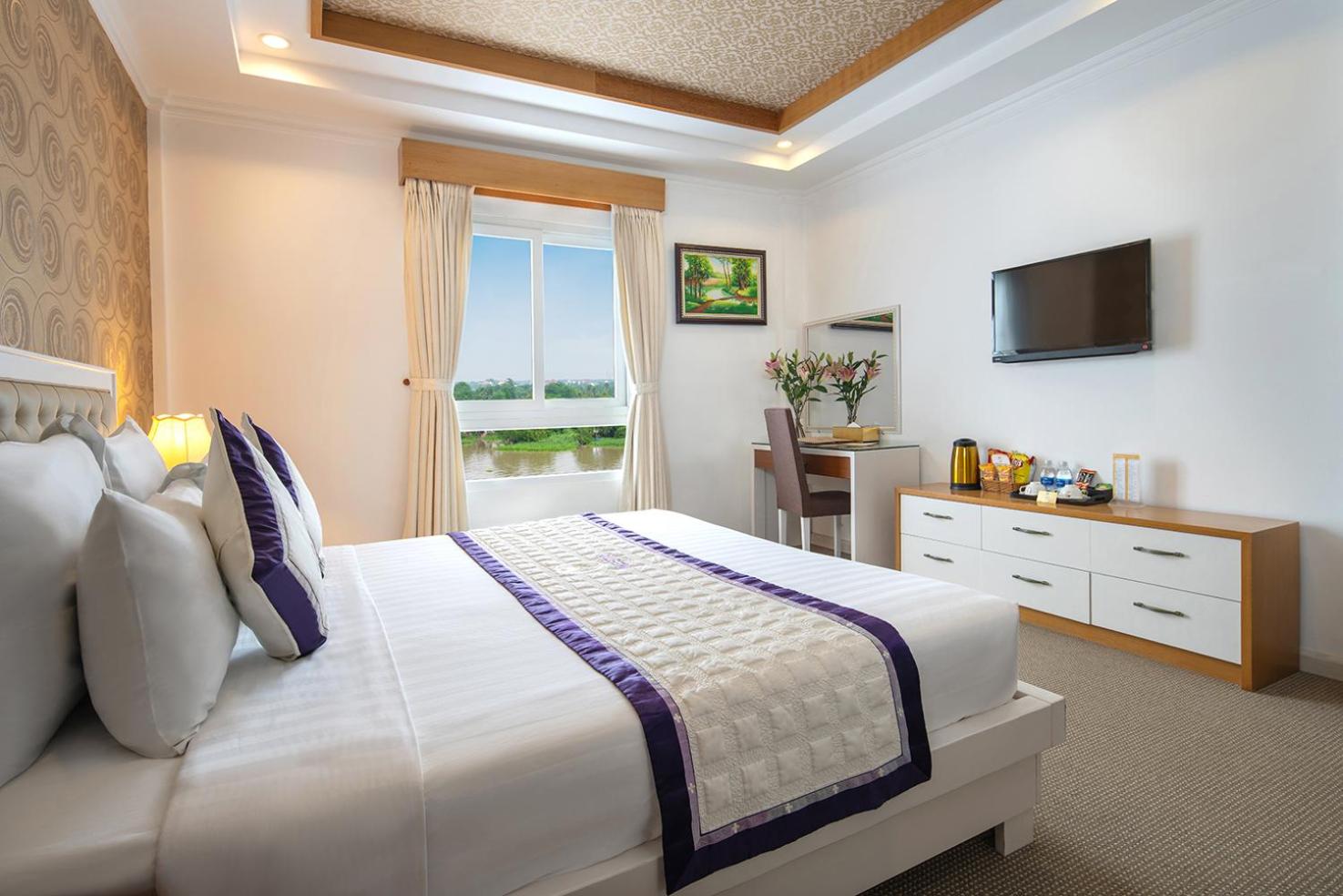 Experience comfort and style at Nesta Hotel Can Tho, where each uniquely decorated room offers modern amenities such as a flat-screen TV, air conditioning, and a minibar. Enjoy stunning views of the Hau River or the city from select rooms, providing a truly unforgettable stay.