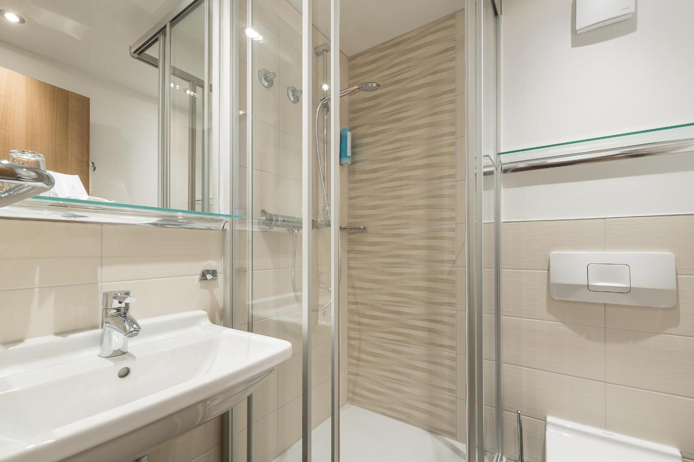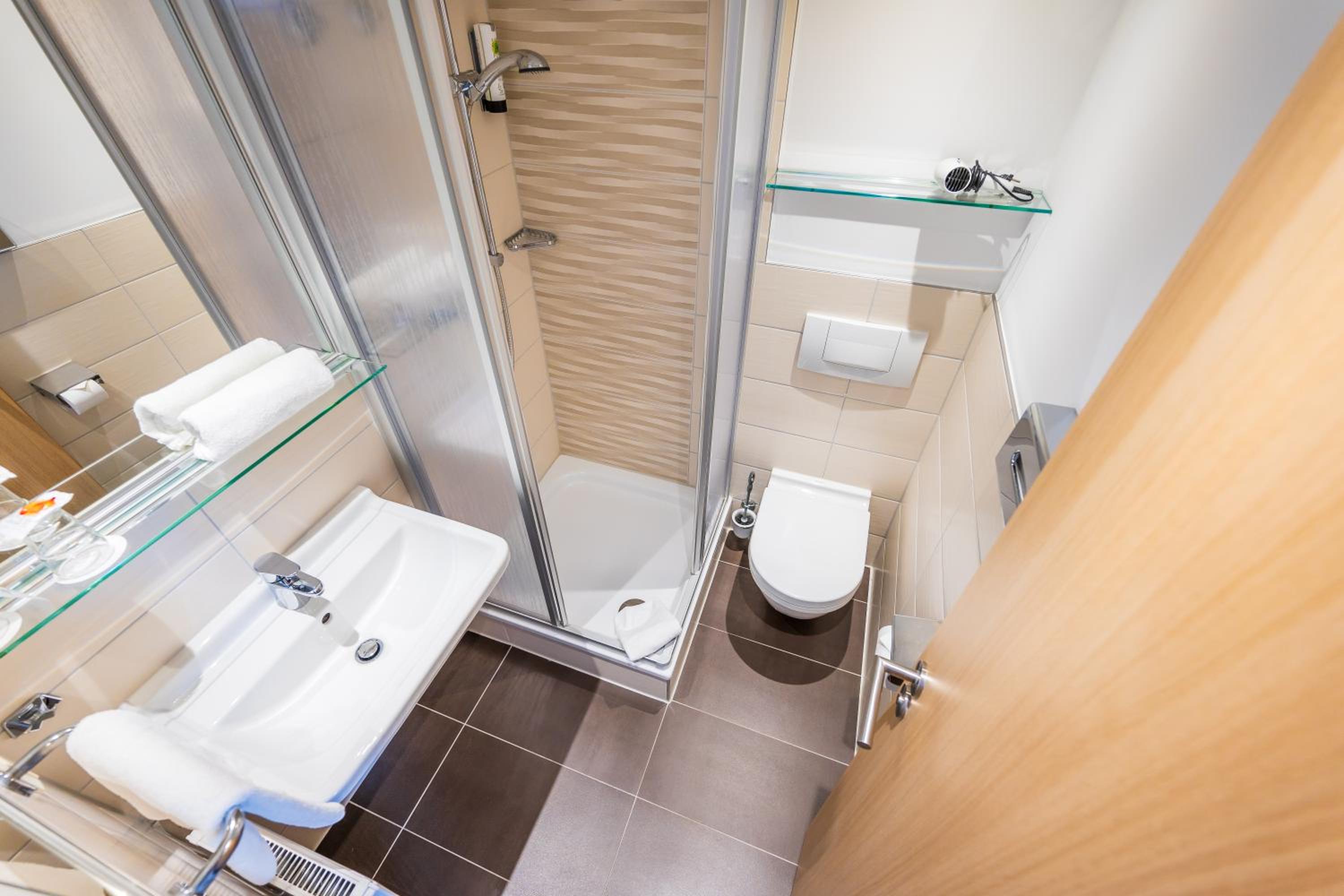 Das Bad ist sehr klein. Die Kopfkissen sind knubbelig.