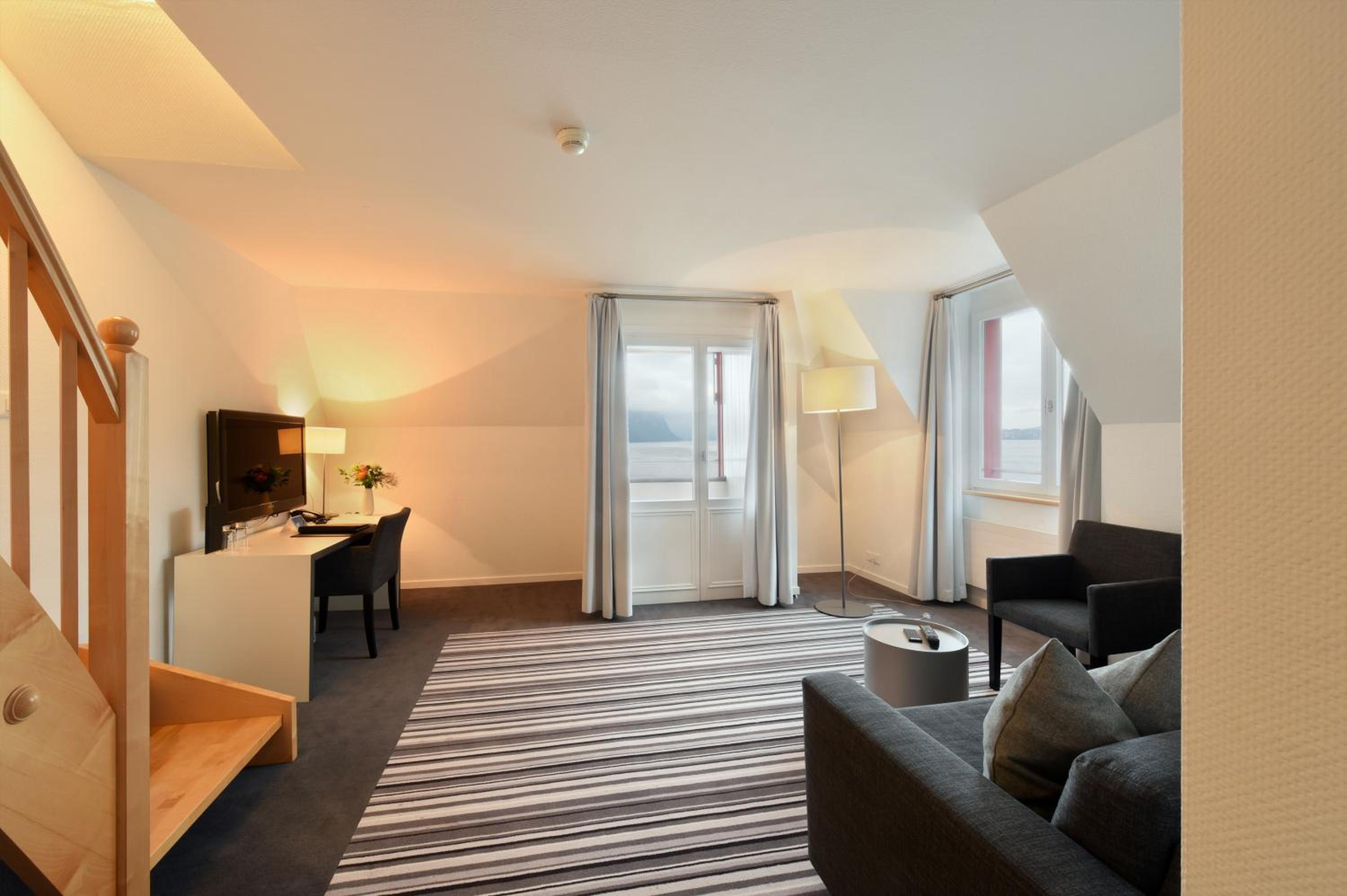 The Hotel Vitznauerhof - Lifestyle Hideaway at Lake Lucerne offers elegantly furnished rooms and suites with free Wi-Fi access, ensuring a comfortable and connected stay for all guests.
