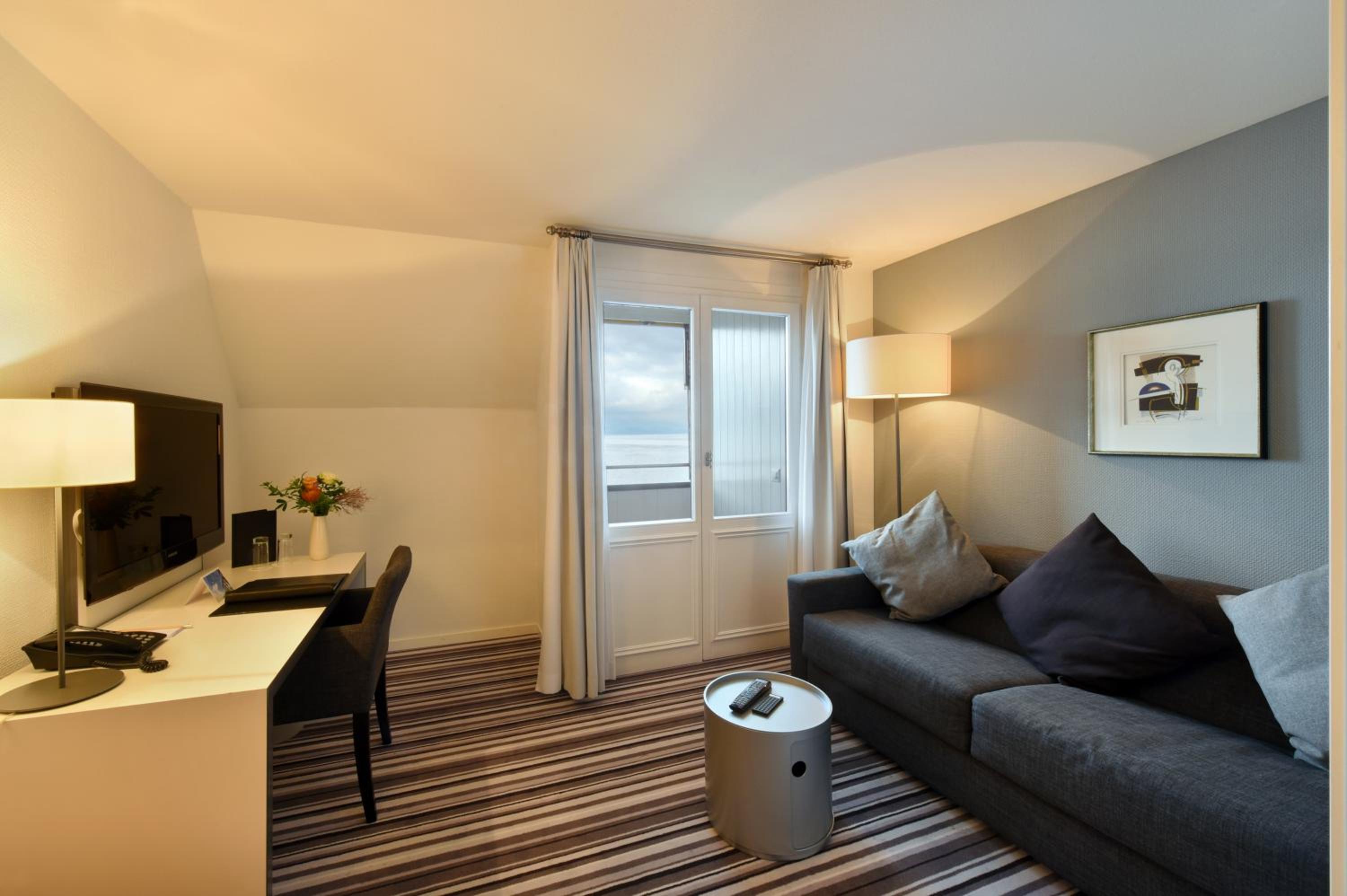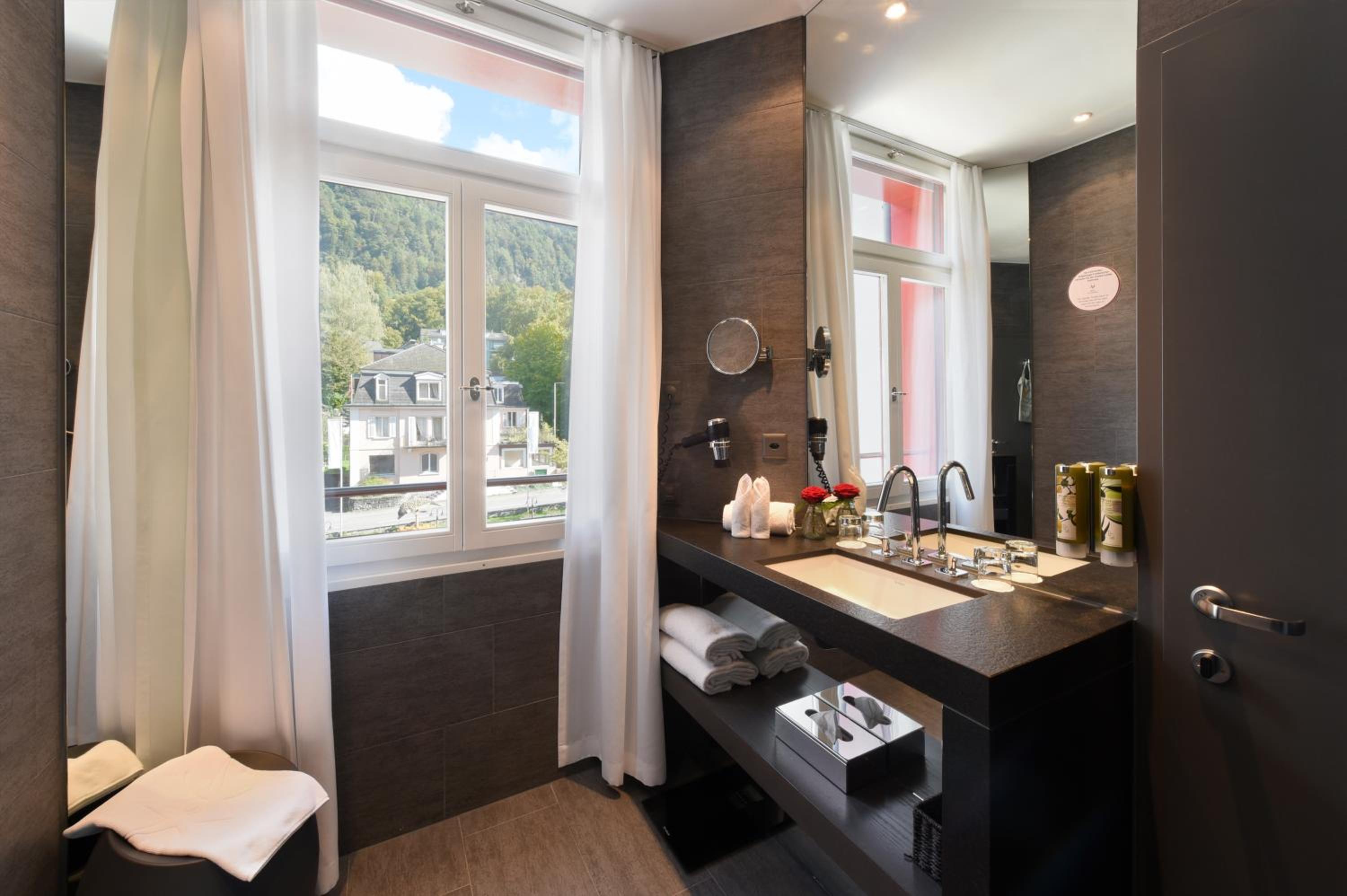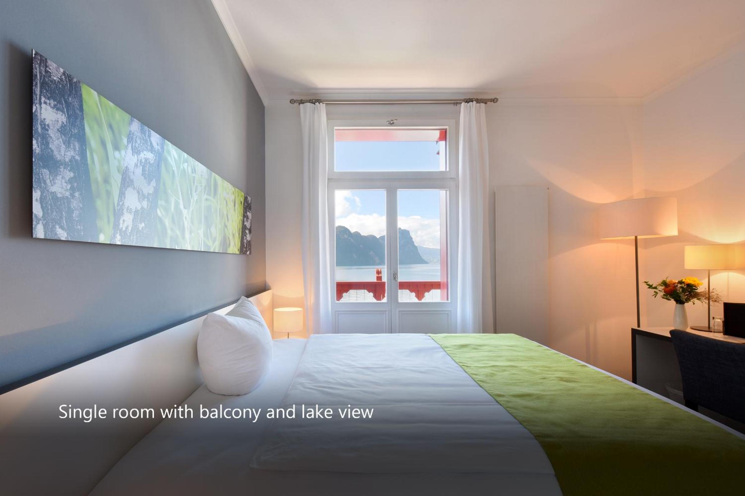 Great view from the balcony of our room! Property has a western view and we were gifted two amazing sunsets over the lake, one from the secret lakeside sauna. Wonderful spa! and a close walk to the train up to the top of Mt Rigi. Nice restaurant for dinner and amazing breakfast included.