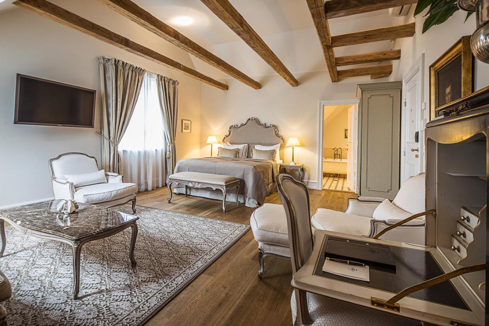 Indulge in luxury at Kokkedal Castle with individually decorated rooms, offering views of the picturesque gardens or the tree-lined castle avenue. Enjoy amenities like Italian toiletries and a wide selection of TV channels for your entertainment.
