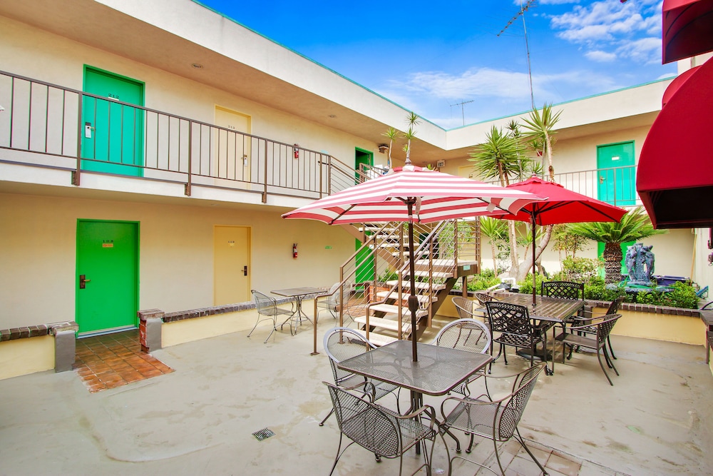So CLEAN! This place was great for an overnight near the Wiltern Theater. Stayed in one of the suites with 3 beds which was perfect. Beds were comfy, and the place was spotless! Furniture has been updated since the photos were taken. There was plenty of parking when we arrived at 6pm on a Saturday night. And the hotel was quiet too - didn’t hear any noise from neighbors or in the hallways. Great place to stay!
