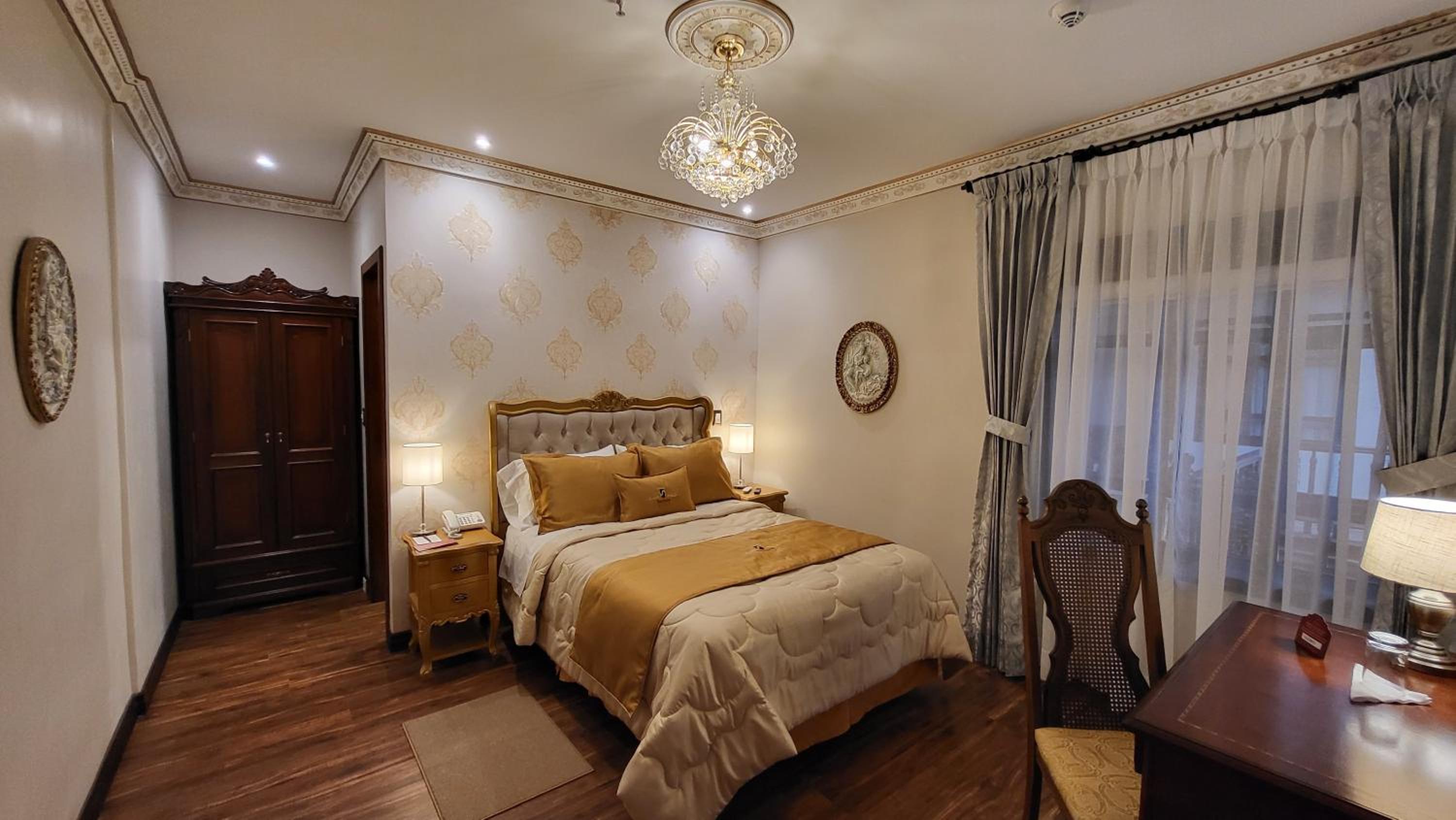 Experience the charm of a refurbished Colonial-style mansion at San Juan Hotel, just steps away from Calderon Park and Cathedral. Admire the chic interiors with sculpted wood details, upholstered chairs, and Spanish galleries, exuding elegant décor.