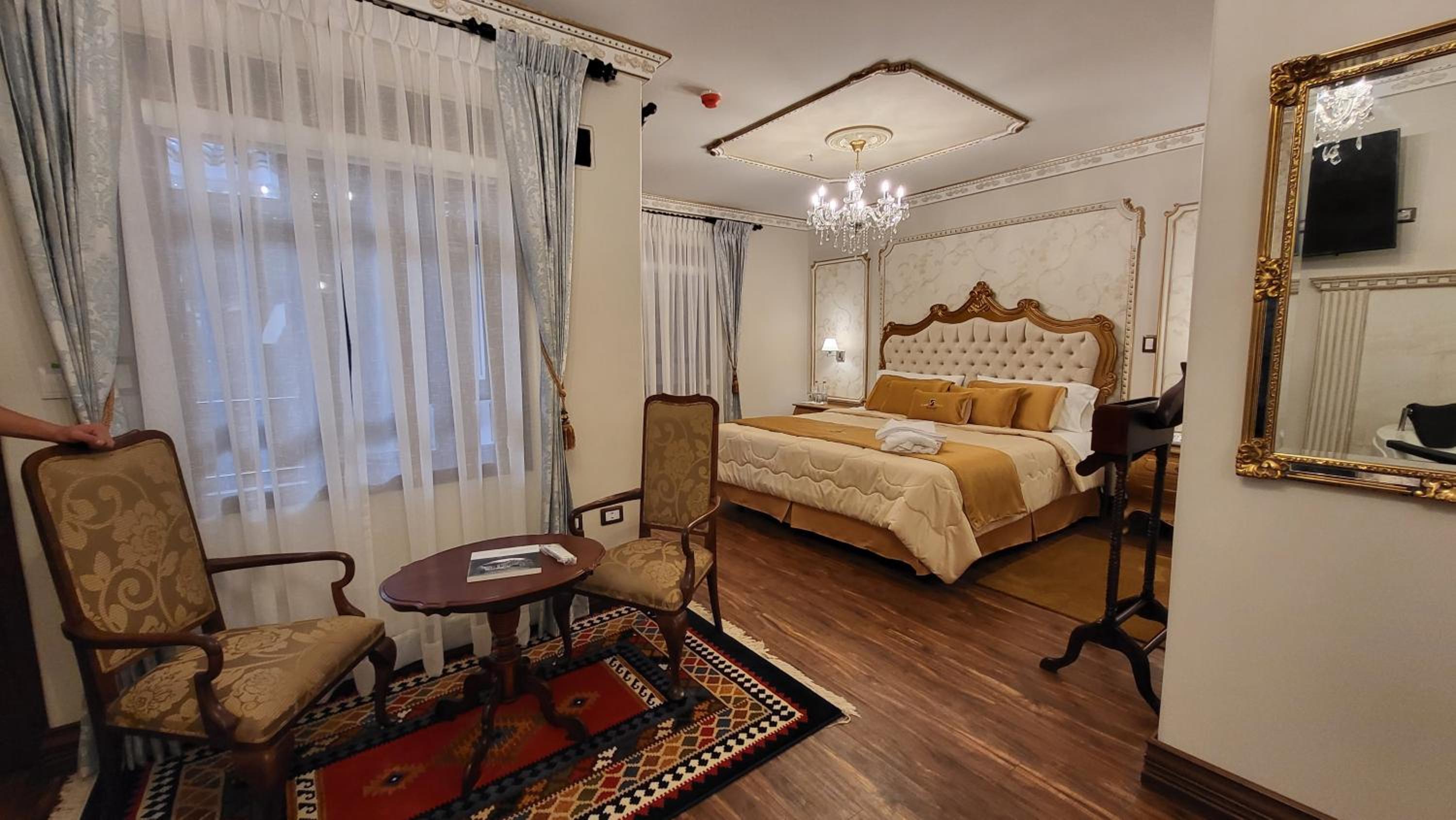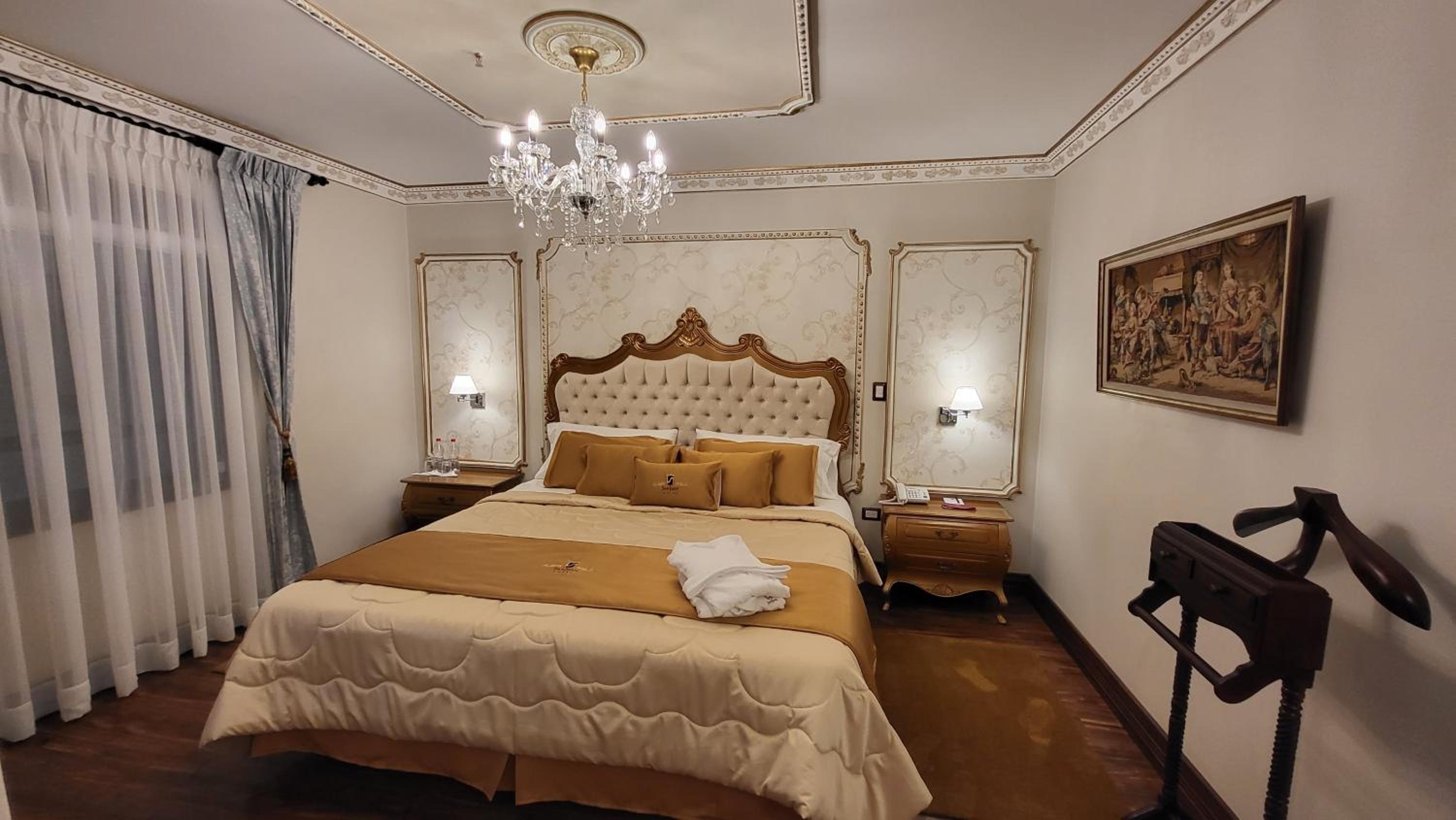 Indulge in comfort with rooms featuring flat-screen TVs, minibars, and private bathrooms with complimentary toiletries. Some rooms boast decorative wallpaper, parquet floors, and antique-style furniture for a touch of luxury.