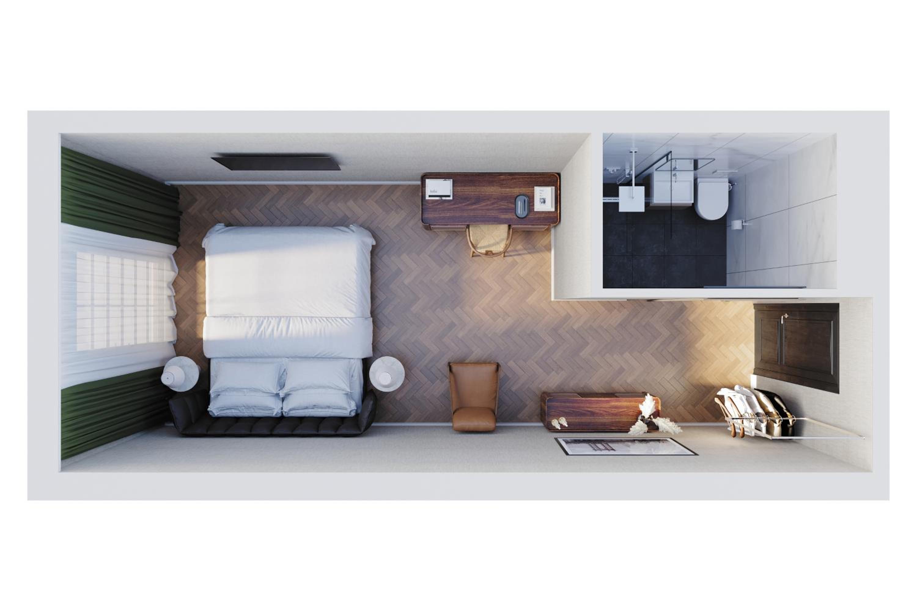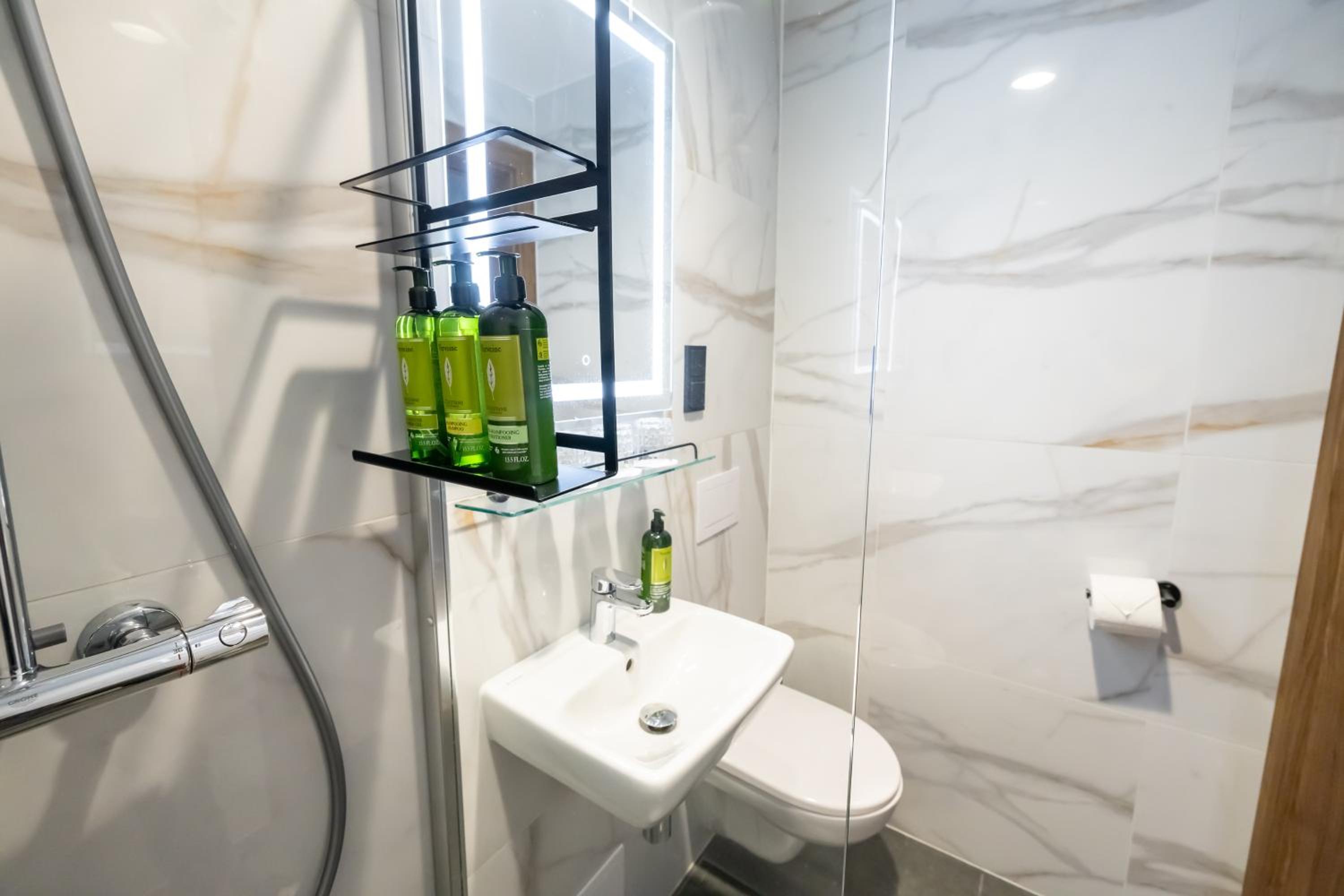 the space in the toilet… sink was super small and no wardrobe/furniture for luggage. besides this all was great!