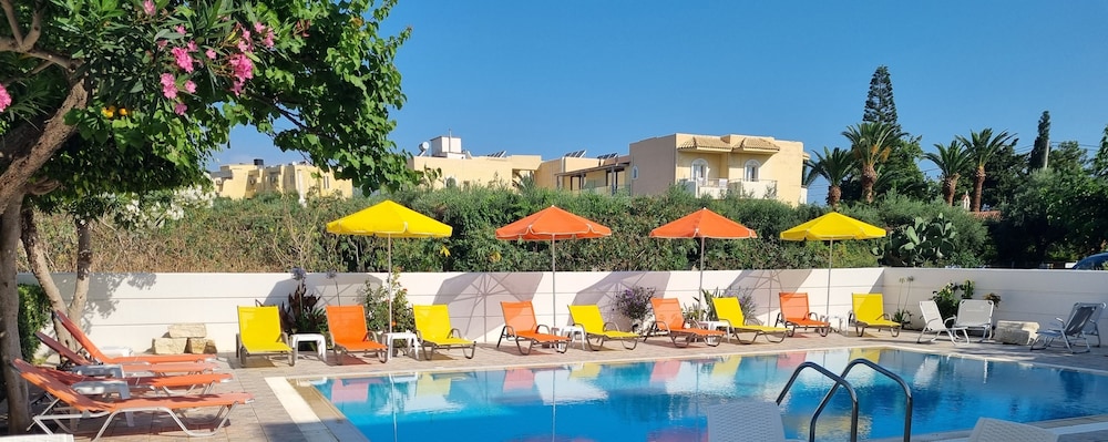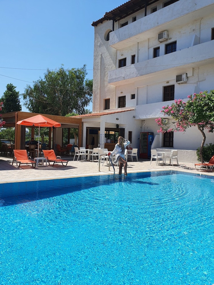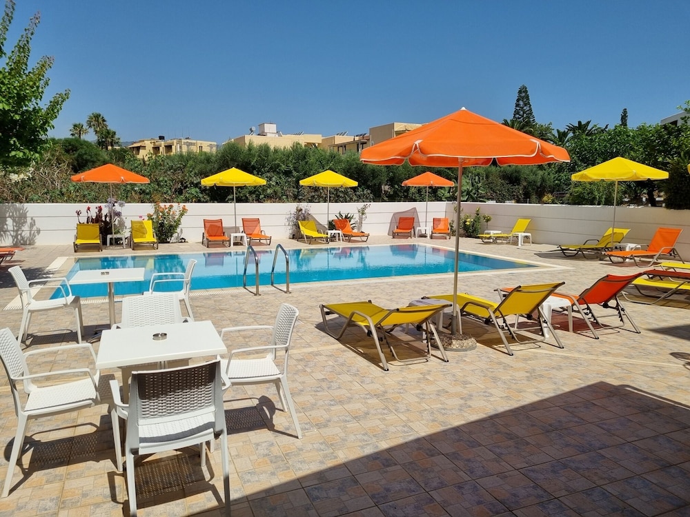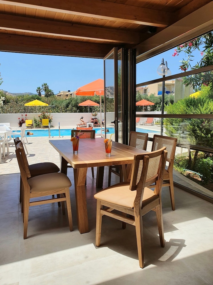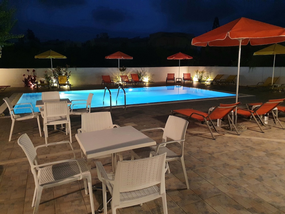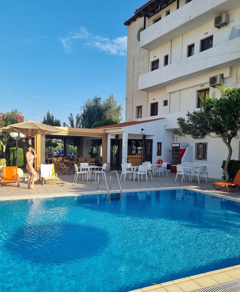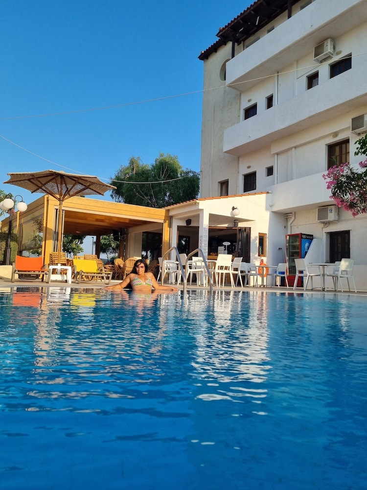 Our stay was arranged last minute but the very friendly family hotel owners were incredibly flexible and considerate when catering for our particular needs. Our room was spacious and clean. Although self-contained in terms of bar, food and swimming pool, it is only 5 minutes walk from the beach and beachside shops/restaurants. An enjoyable and memorable short stay. Homemade ice cream a speciality. Also have on sale interesting local wines, honey and oil for gifts. Only 15 minutes drive from Heraklion airport.