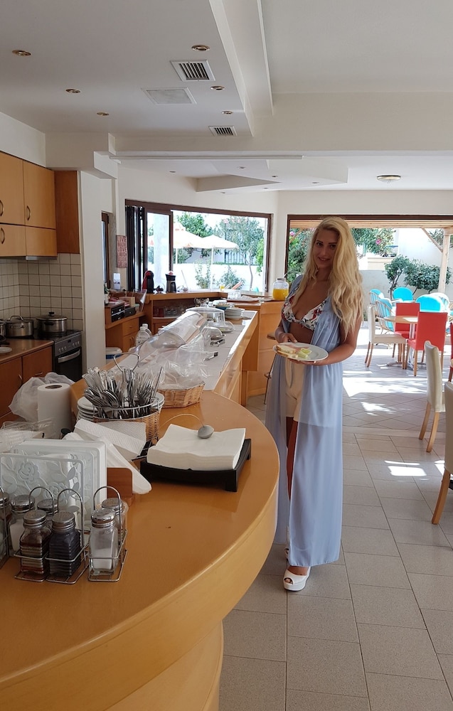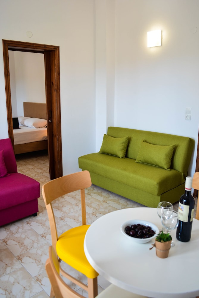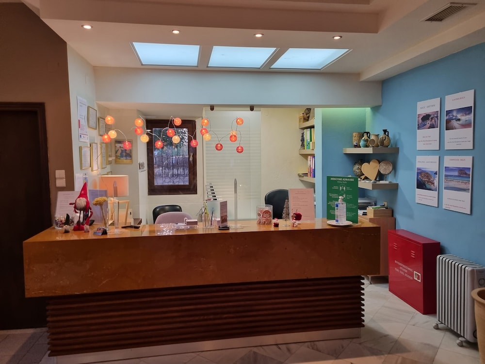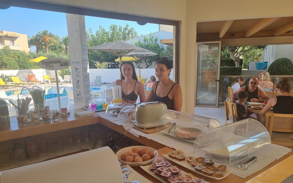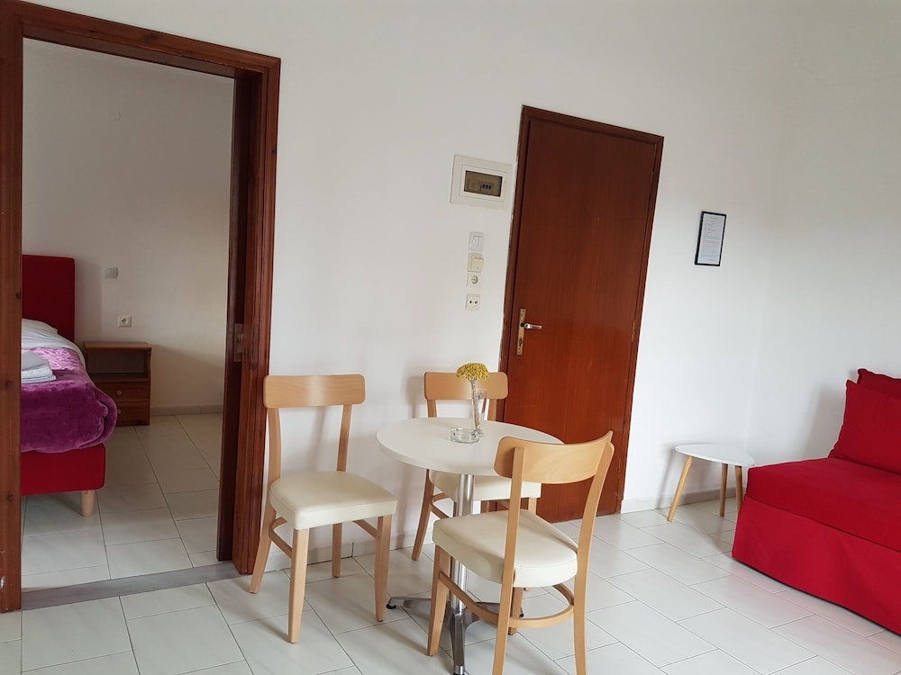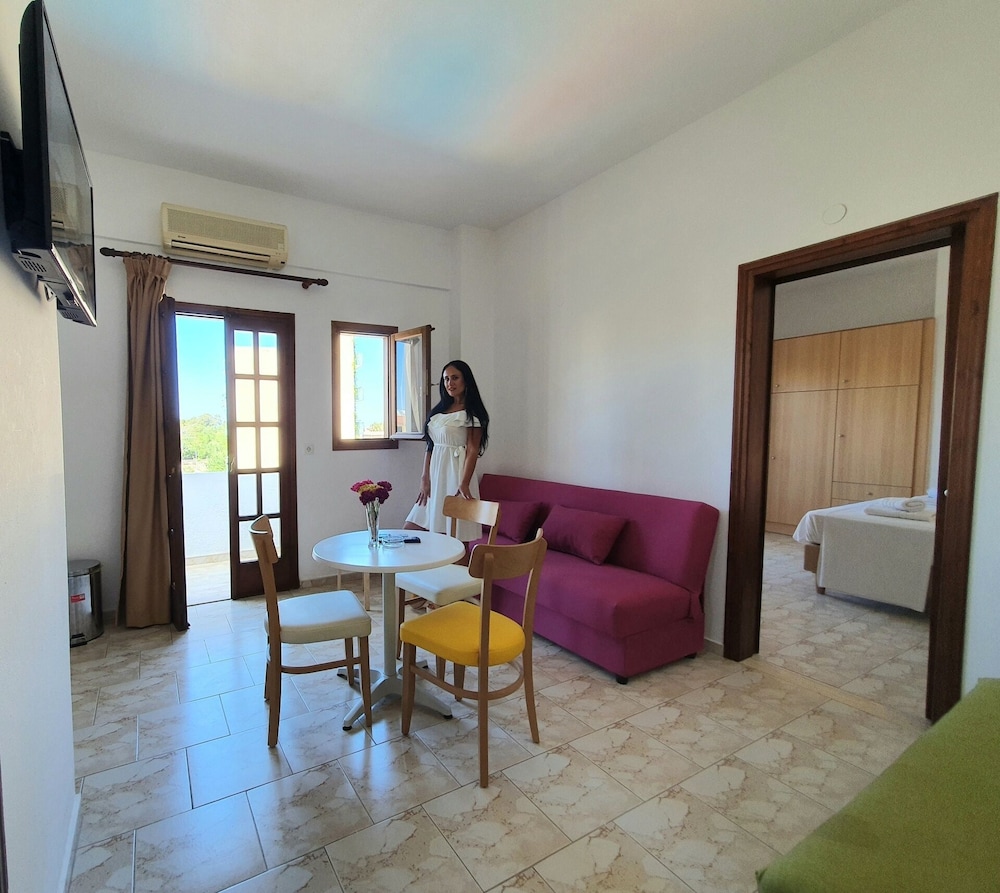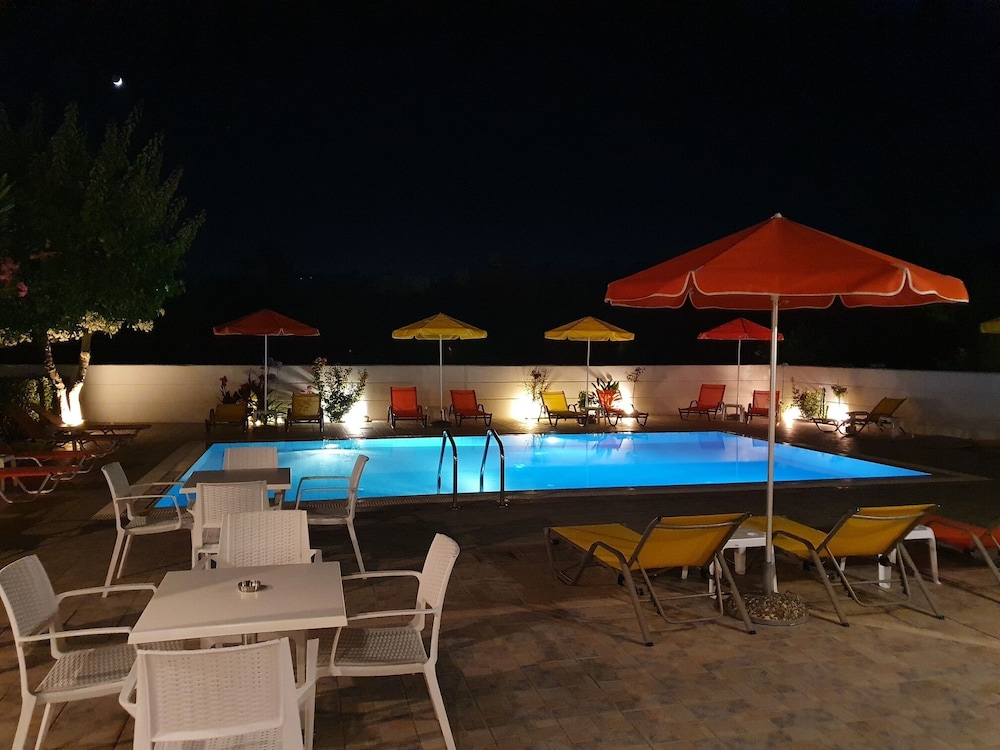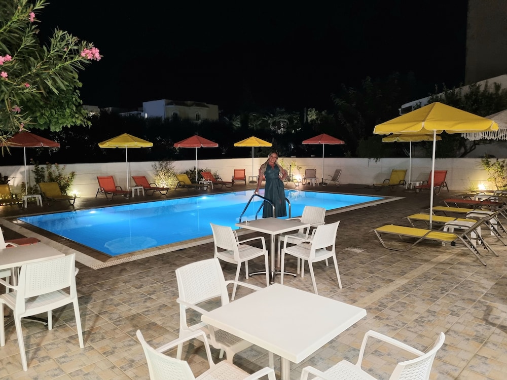 Our stay was arranged last minute but the very friendly family hotel owners were incredibly flexible and considerate when catering for our particular needs. Our room was spacious and clean. Although self-contained in terms of bar, food and swimming pool, it is only 5 minutes walk from the beach and beachside shops/restaurants. An enjoyable and memorable short stay. Homemade ice cream a speciality. Also have on sale interesting local wines, honey and oil for gifts. Only 15 minutes drive from Heraklion airport.
