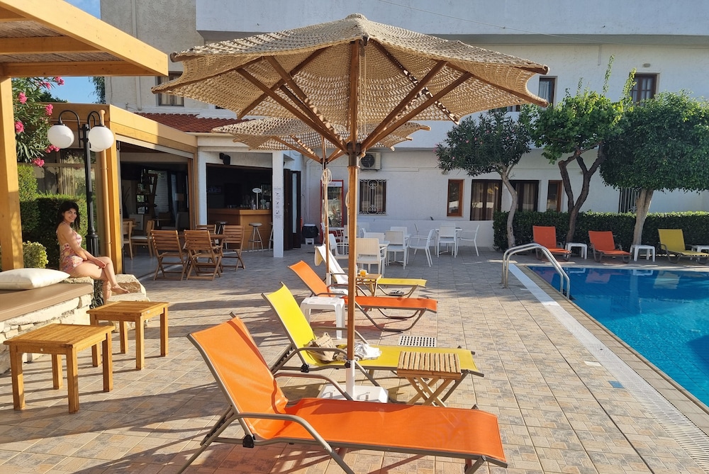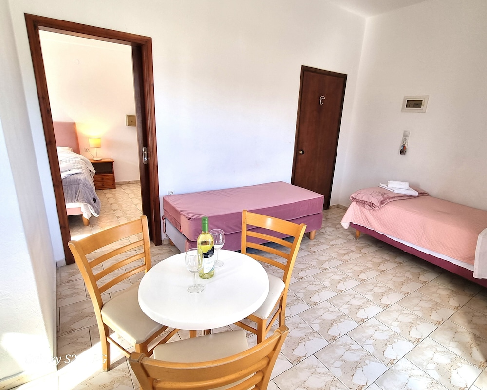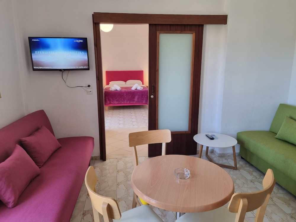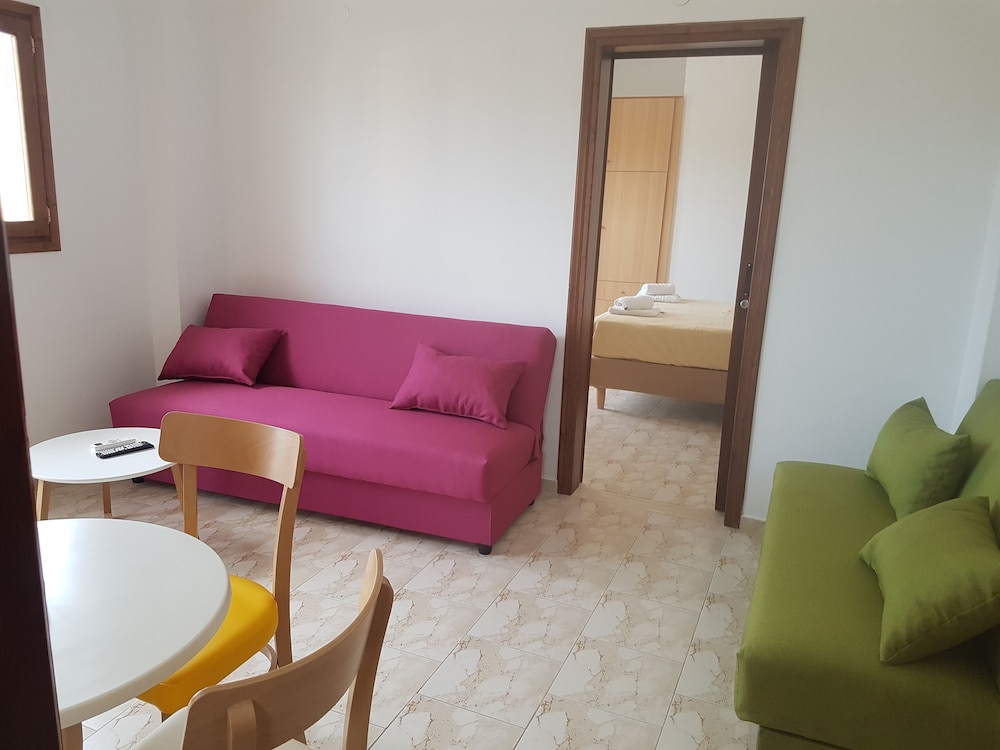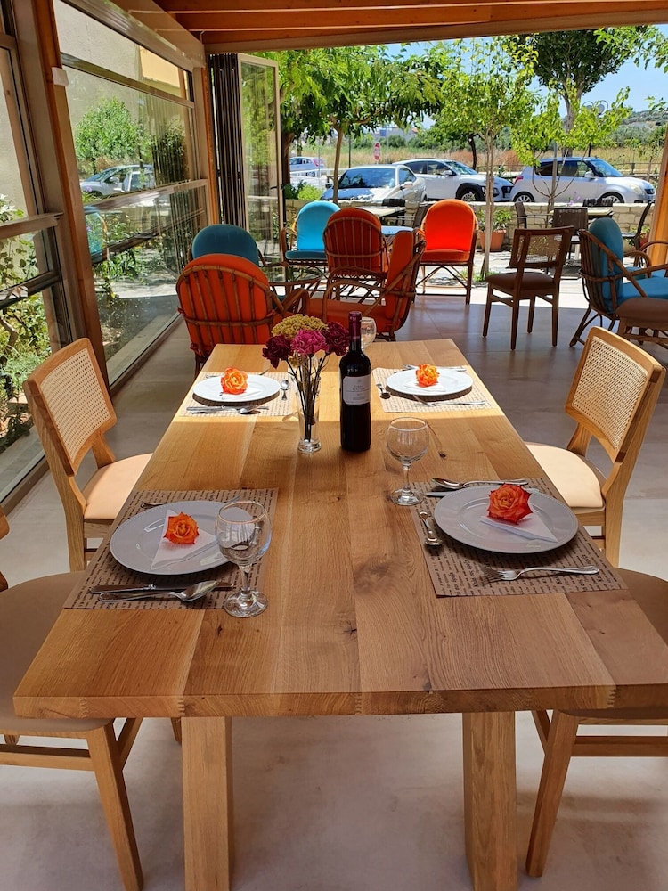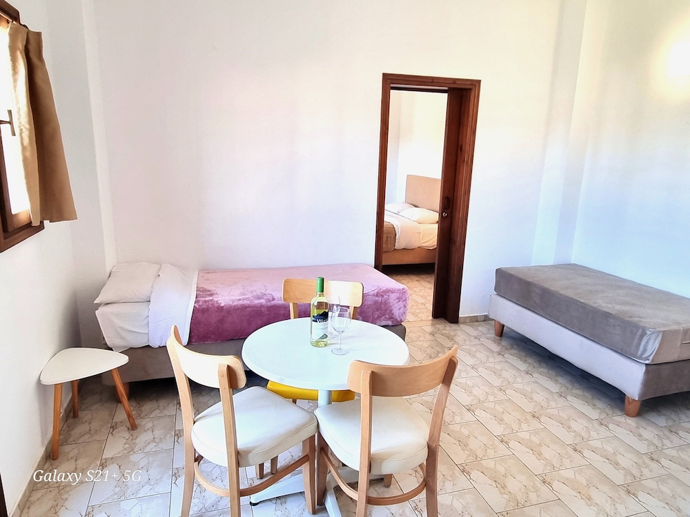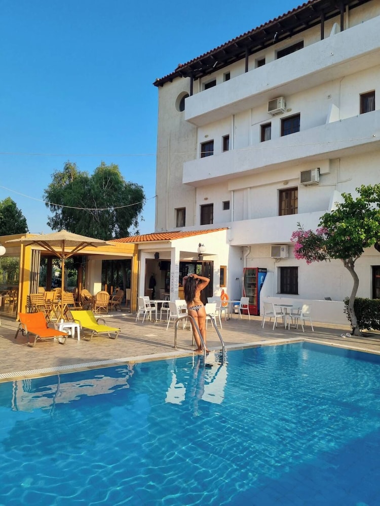 Our stay was arranged last minute but the very friendly family hotel owners were incredibly flexible and considerate when catering for our particular needs. Our room was spacious and clean. Although self-contained in terms of bar, food and swimming pool, it is only 5 minutes walk from the beach and beachside shops/restaurants. An enjoyable and memorable short stay. Homemade ice cream a speciality. Also have on sale interesting local wines, honey and oil for gifts. Only 15 minutes drive from Heraklion airport.