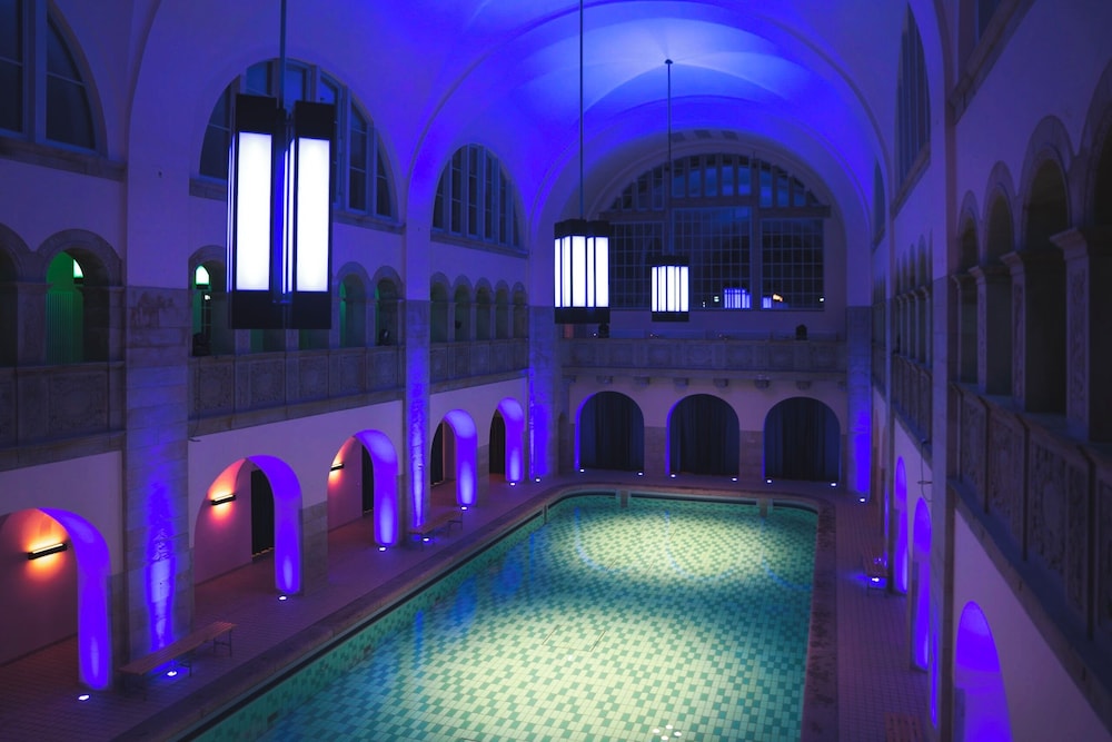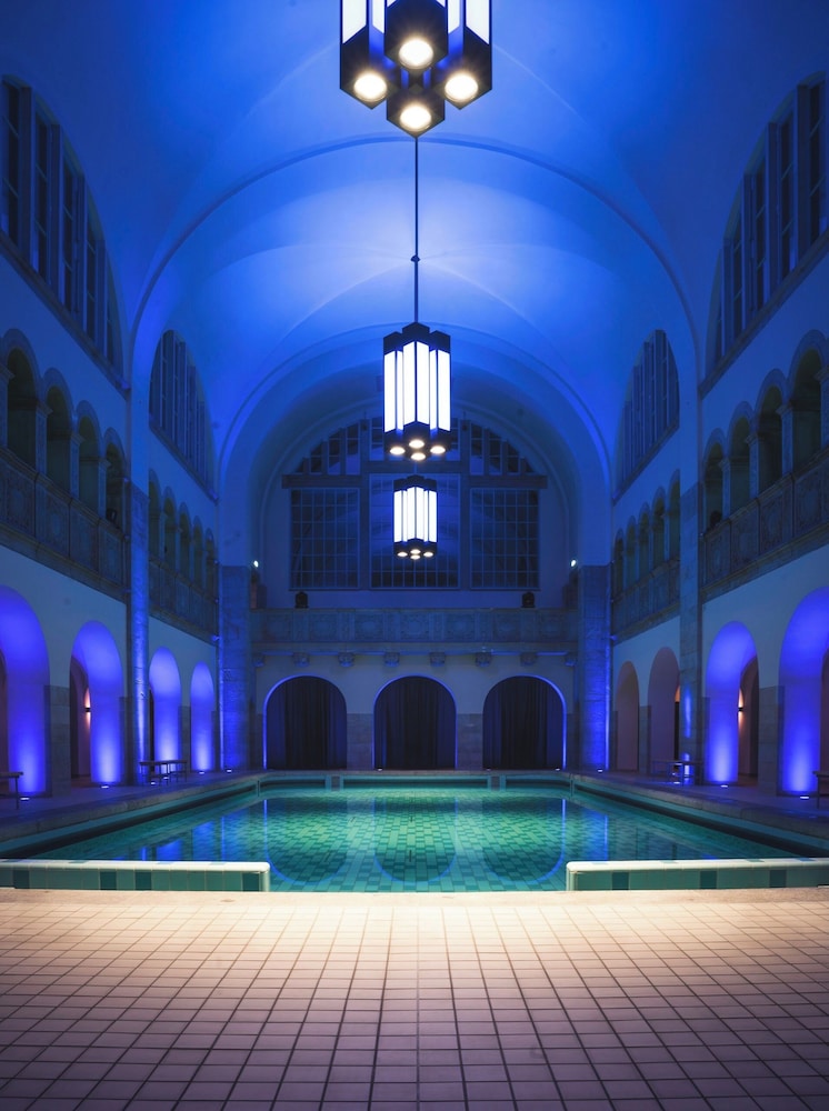 Hotellet er spændende indrettet i den gamle badeanstalt, som man som hotelgæst har adgang til - mod et mindre gebyr.