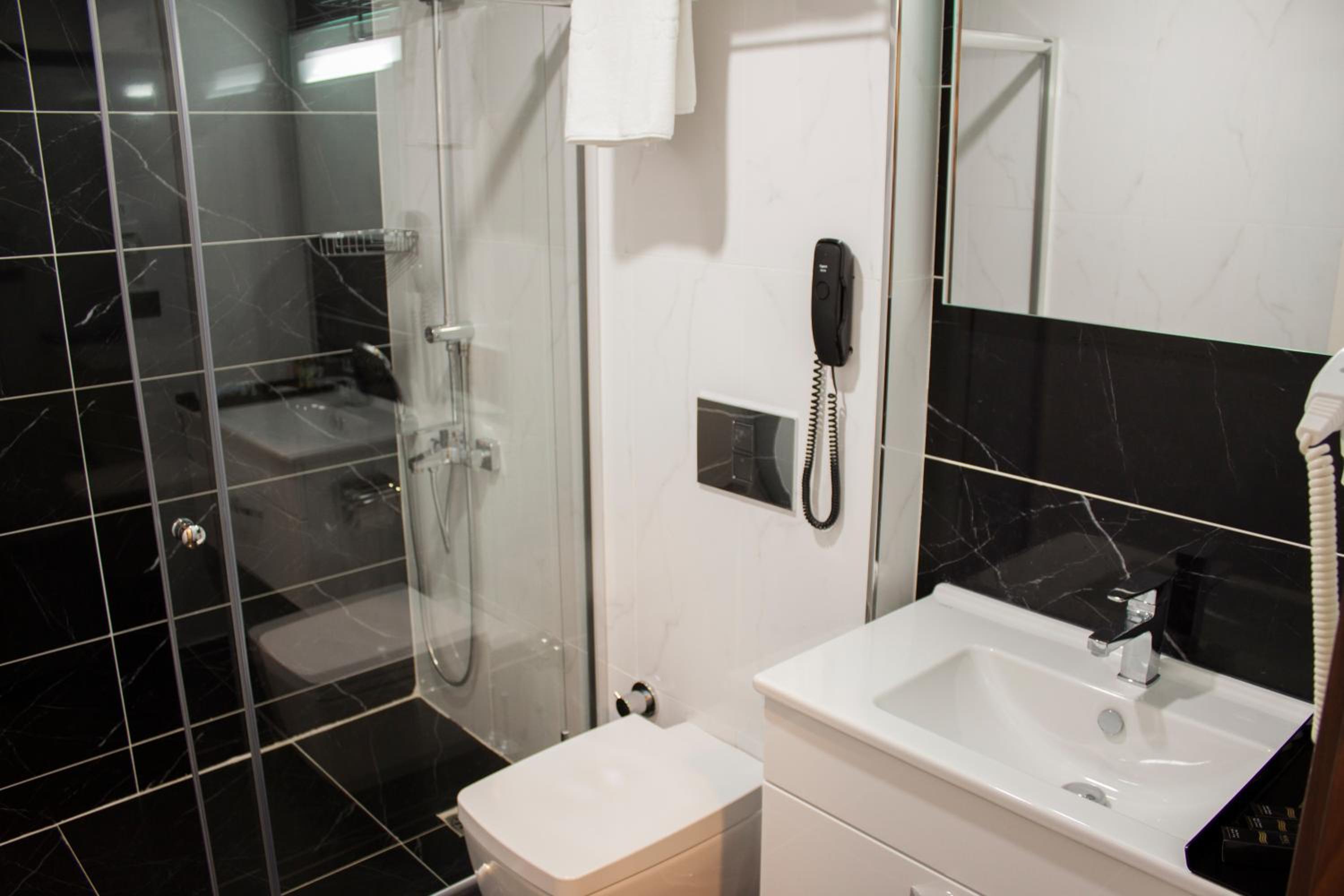 Konakladığımız odanın banyosu duş kabini camı vardı fakat dışarı su sızdırıyordu açılır kapanır kapı olması lazım