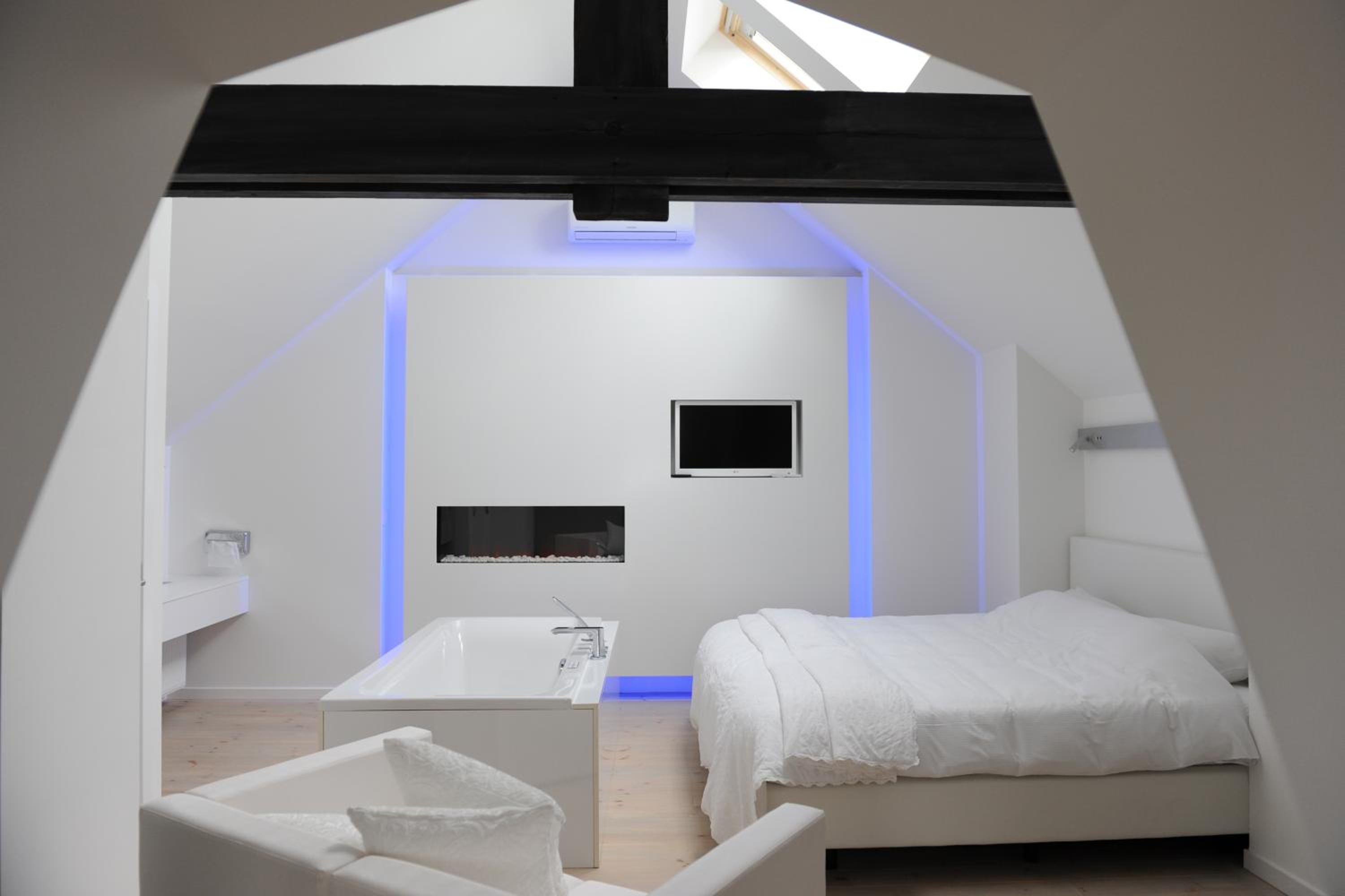 We got a free upgrade to an amazing room with a sauna inside of the tower, and a jacuzzi bath in front of our bed.