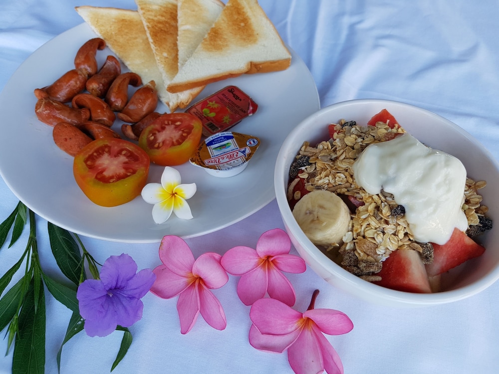 Ett helt okej boende, stora rum med uteplats. Badrummet var dock inte speciellt fräscht och luktade väldigt äckligt, fick ha dörren stängd hela tiden så det inte skulle börja lukta i rummet. Ligger ca 5-10 min promenad från huvudgatan, men vi hyrde cyklar så då går det självklart ännu fortare. Wifi var inte det bästa, funkade ibland och ibland inte. AC:n slutade funka en kväll, de sa att generatorn var för liten för att orka.. Men den gick igång efter någon timme igen. Frukosten var väldigt bra! Man får välja från en meny sen kommer de med maten till rummet.