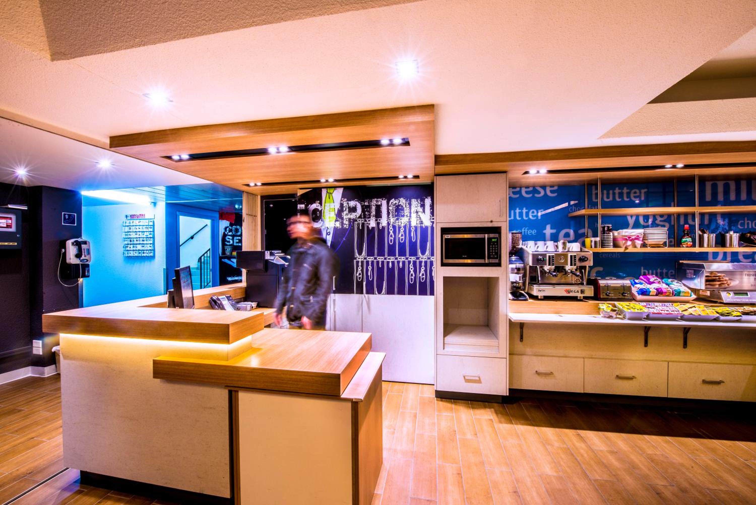 There was another persons hair on the toilet seat. No cover over the bathroom exhaust and the hole left exposed had mould growing in it. Lighting was harsh fluorescent and no lamps to soften the room. No tissues. Some staff were friendly and welcoming but others were unhelpful. There was an oasis to fill a water bottle - I went to use it and it was empty. Front desk guy just kept staring into his computer rather remedy the situation. He was aware of the situation. We were surprised he did not offer help. Complimentary tea was poor quality.